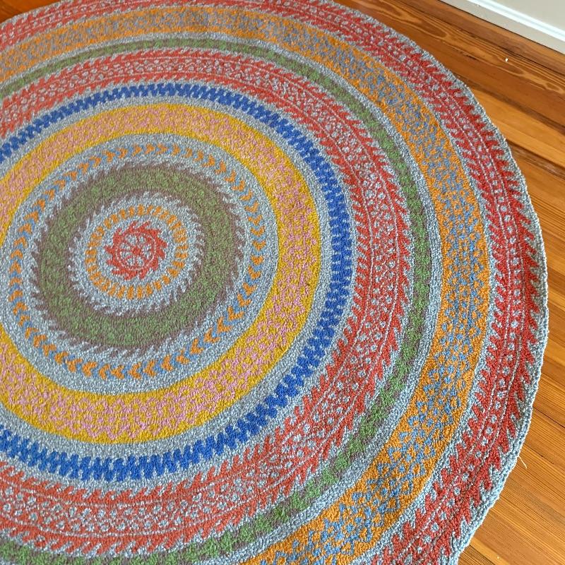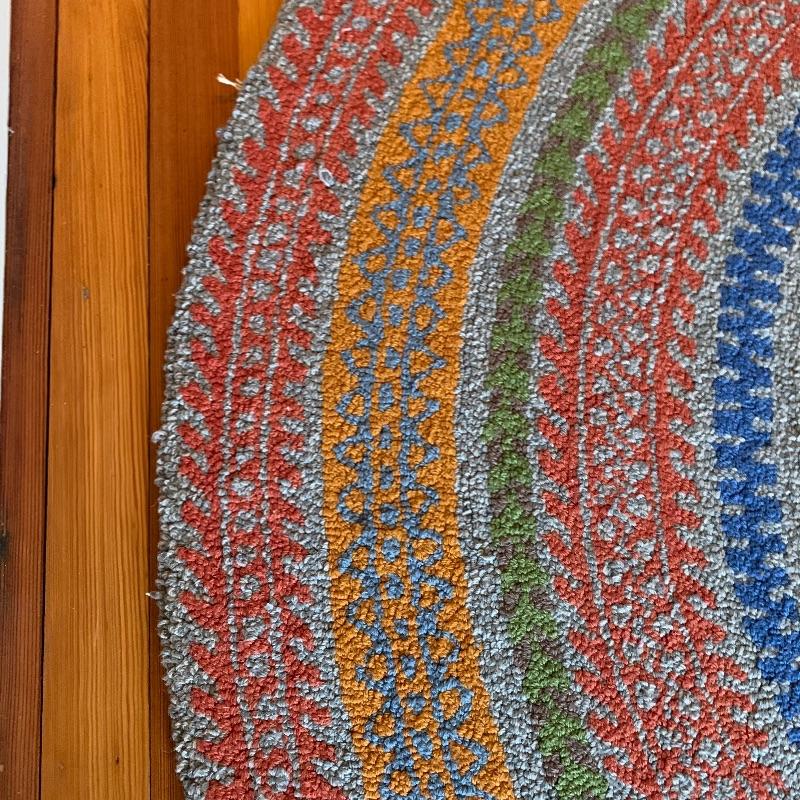 Beautiful multicolor rug. Measures 61” in diameter. In great condition with a little wear around the edges. Local pickup only.