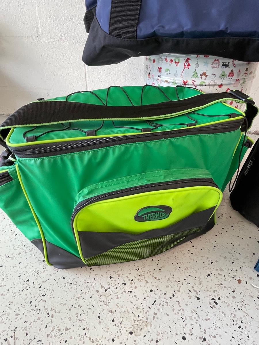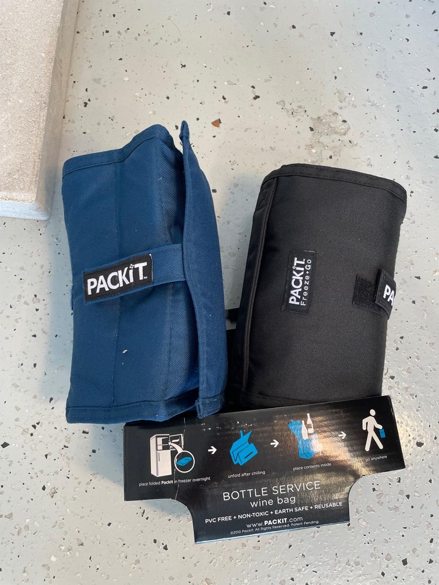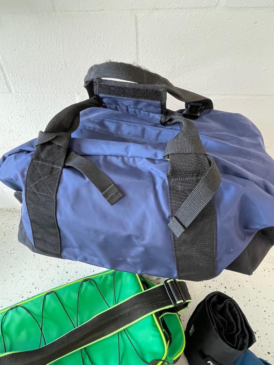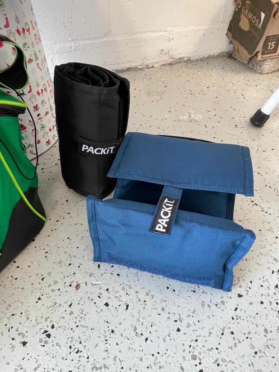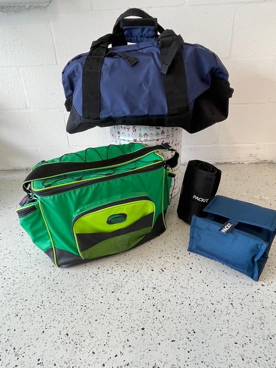 Blue Duffle Bag, pair of "Pack-it" freezer bags and green insulated tote bag