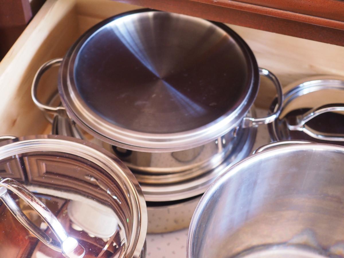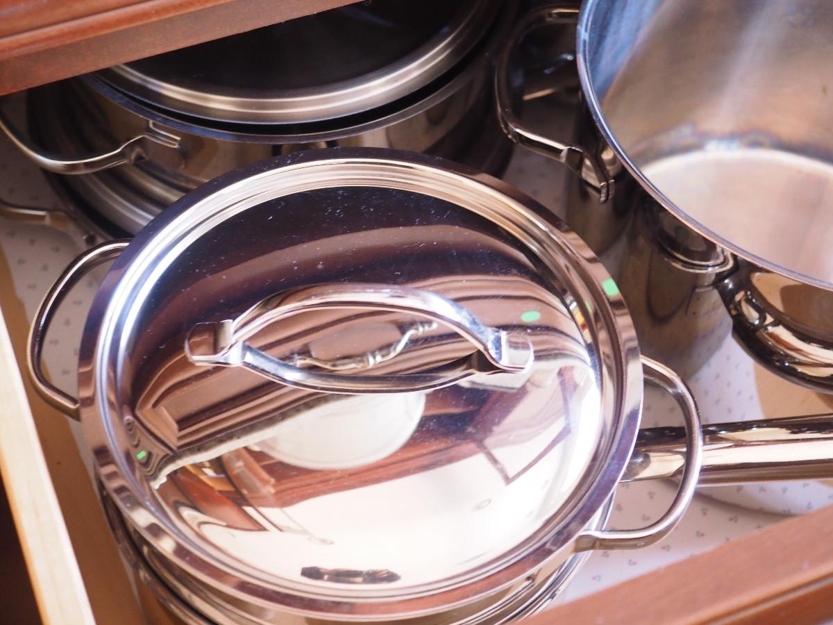 Lot 119 Cuisinart Pots and pans, in nice condition with lids, some other brands mixed in