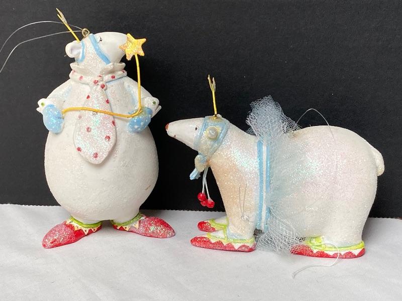 Lot #119 Dept.56 Patience Brewster Christmas Krinkles Polar Bear and Penguin Ornaments