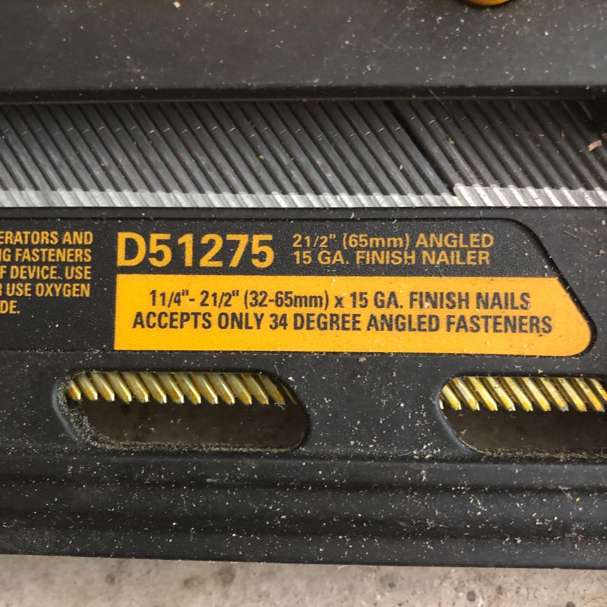Dewalt fifteen gauge air nailer model# D51275. Nailer was not tested.