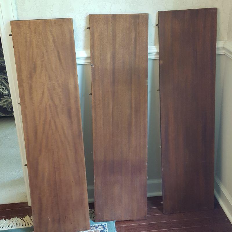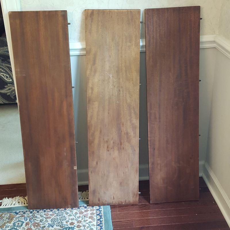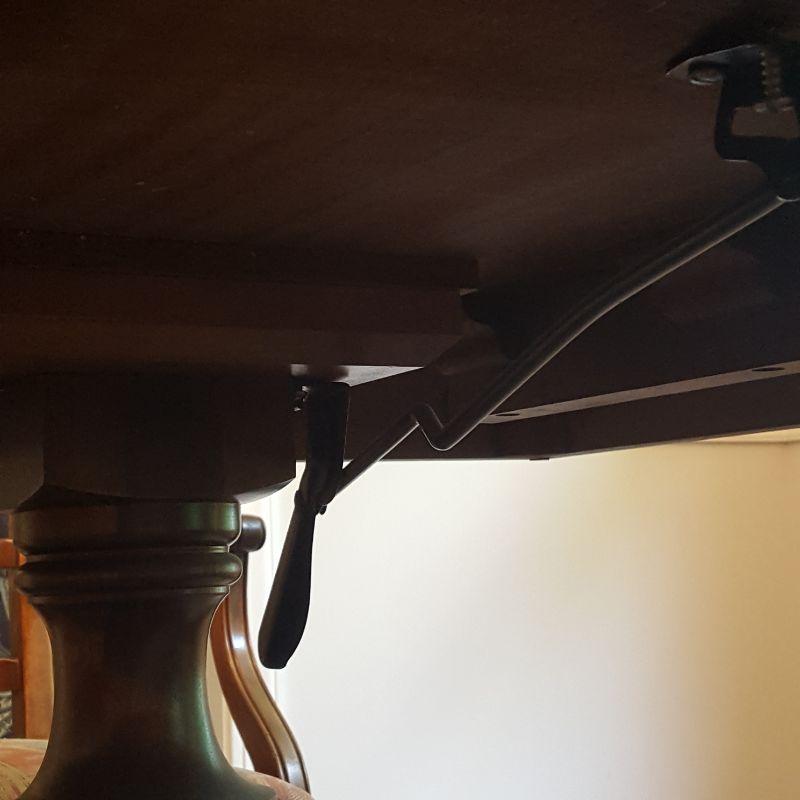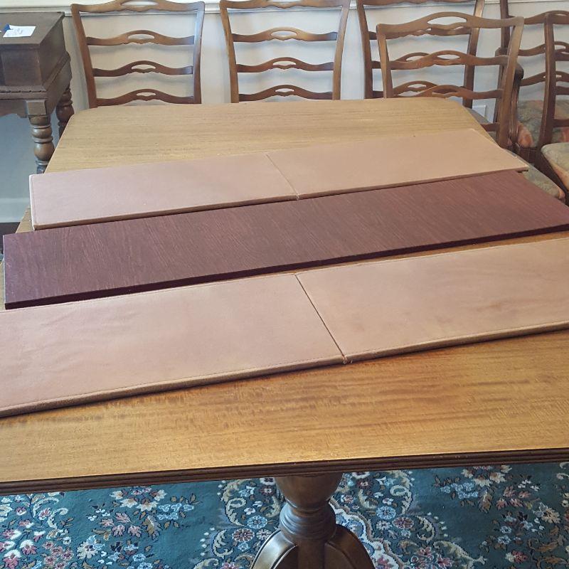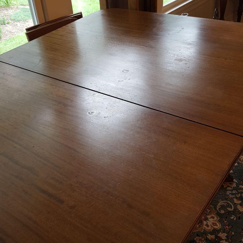 This elegant table includes 3 leaves and table top padding to cover the entire table with the 3 leaves inserted, see pictures. The details in this table are beautiful from the carvings to the brass feet this dining table will have you entertaining in style!. There are some signs of wear on the table top surface. The leaves have a wooden storage unit, that's a little wobbly, but won't fall down. Each leaf measures 11 inches, so you can add 33 inches for maximum entertaining! Lot 120 has 6 elegant chairs to go with this table.