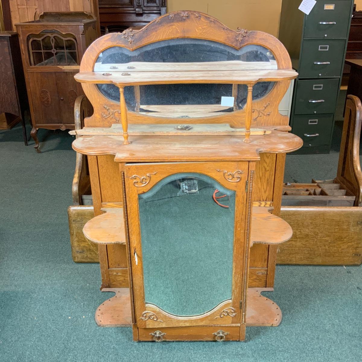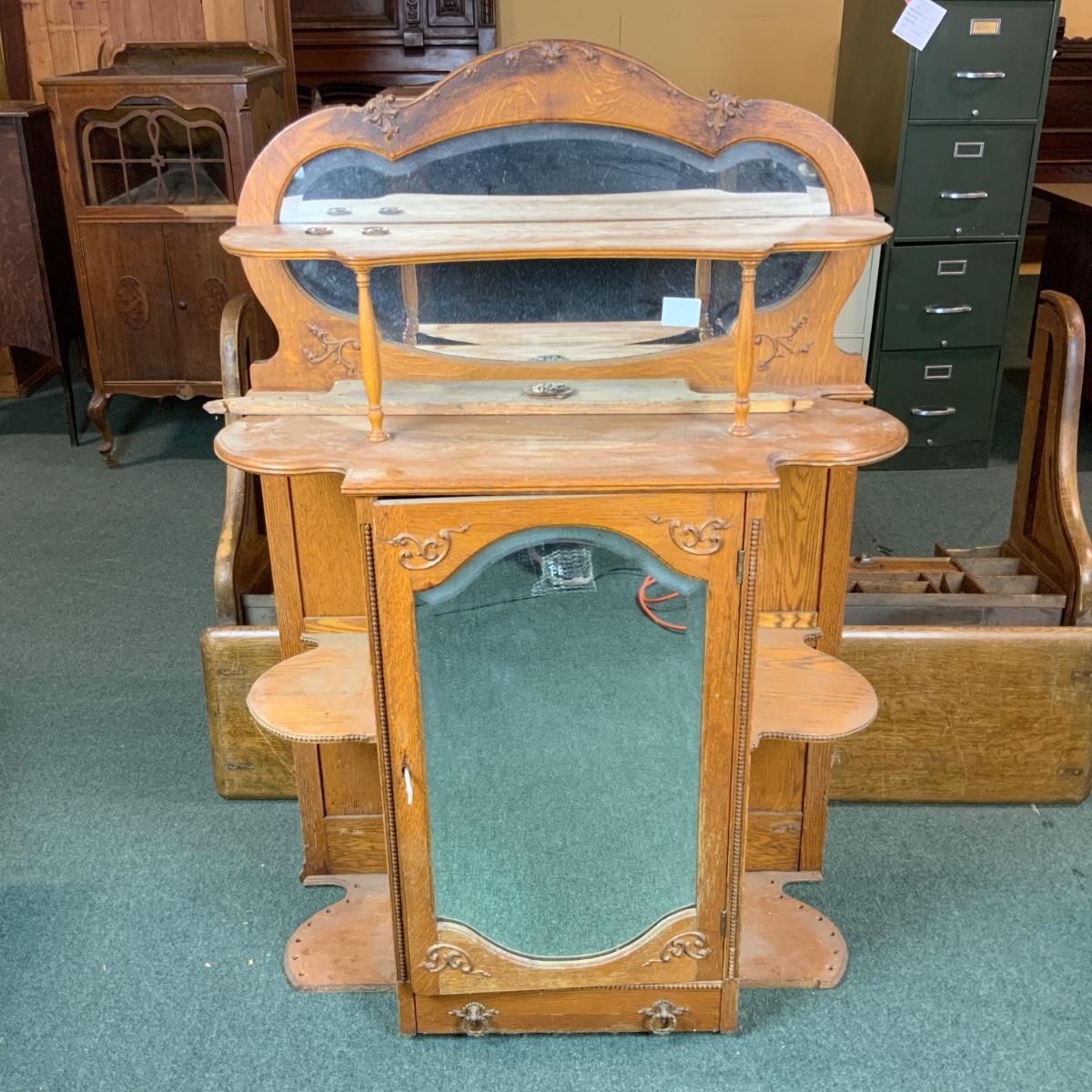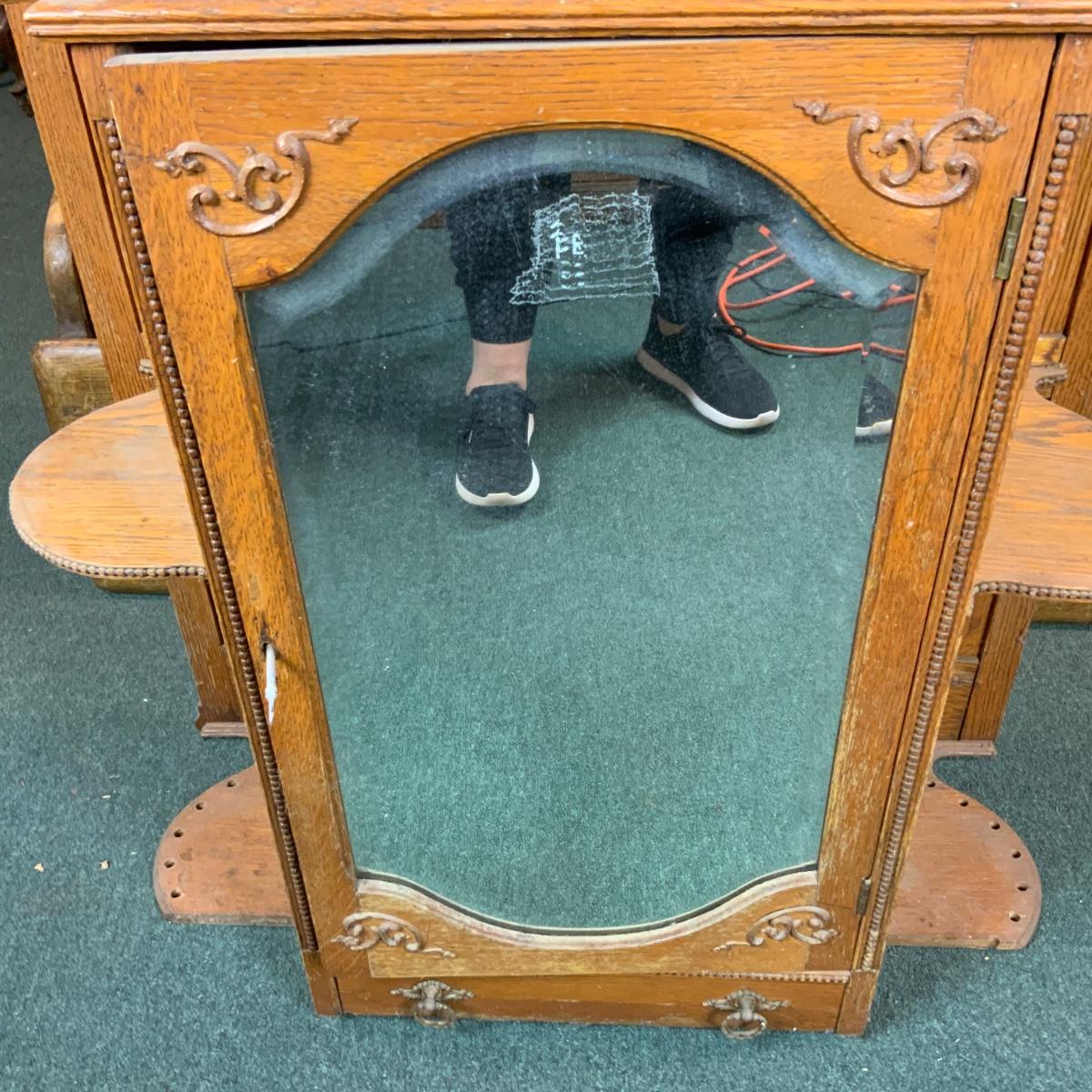 Double Mirror Dresser Top. Intricate design. Could add lots of interest to an otherwise plain dresser. //::\\ Please see photos for details and condition. No attempt has been made to hide any imperfections. All items listed in this auction are warehouse items, and need to be cleaned. A majority of the items need restoration as well. All items are sold AS IS and WITHOUT GUARANTEE. If you are uncertain about an item, DO NOT BID. Due to the nature of this online auction in-person inspection is HIGHLY recommended. All Sales are FINAL. Pick Up Times are FIRM. Please confirm with your own schedule that you can pick up in the scheduled times listed in the Terms and Conditions. Any questions please message the auctioneer. DO NOT Contact The Harp Gallery.