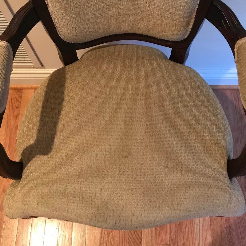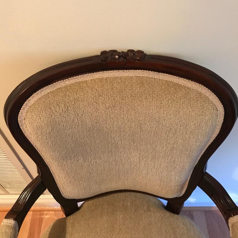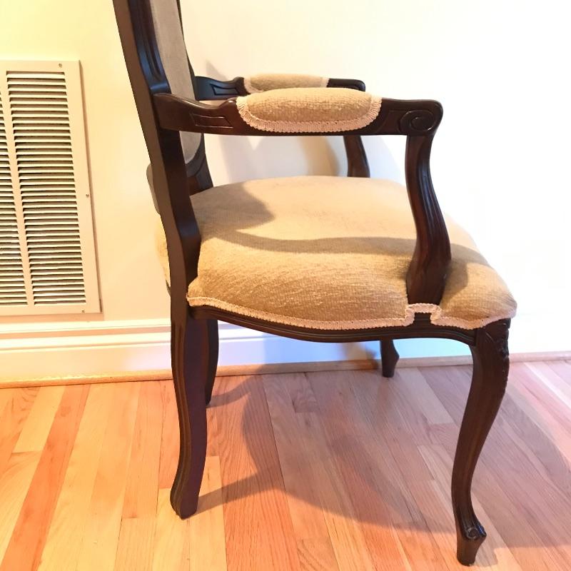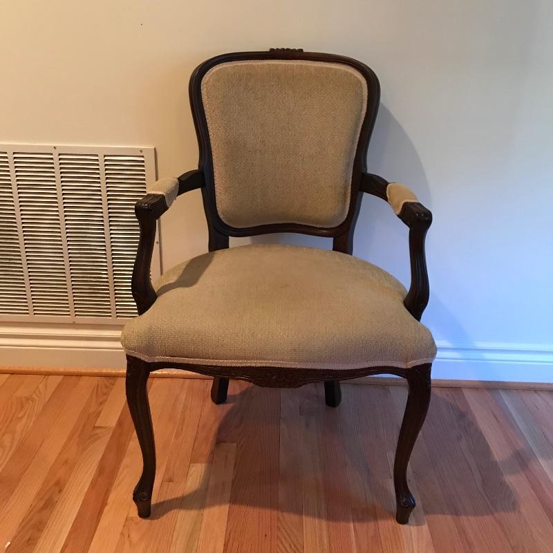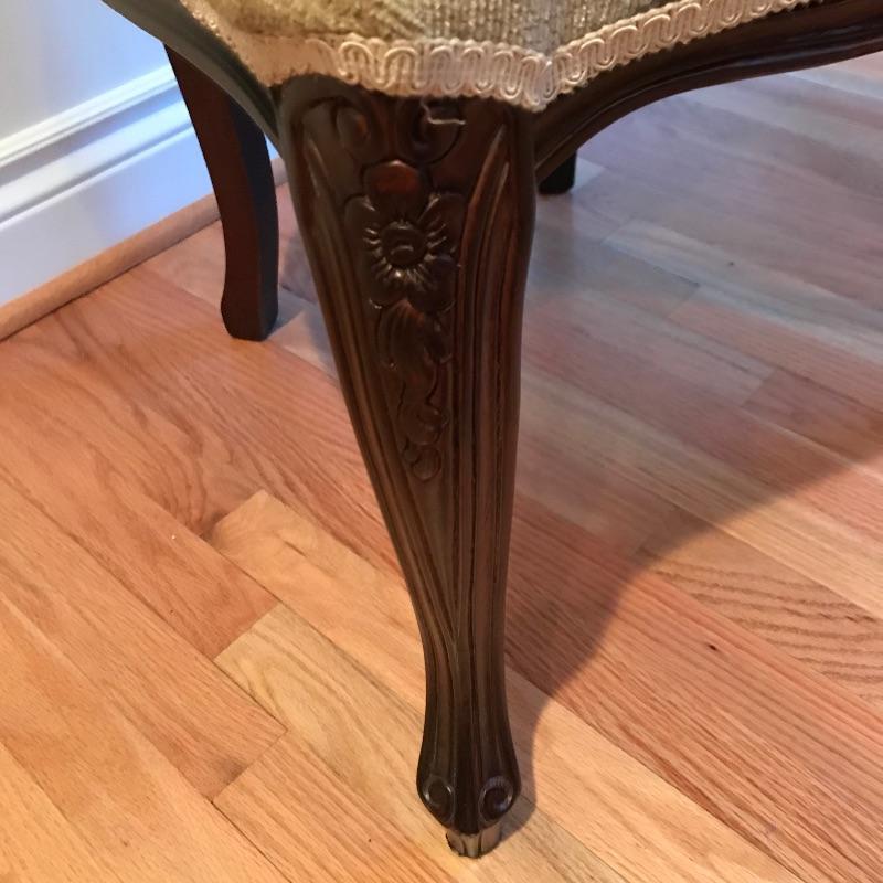 Spice up your sitting area with art and a comfortable chair by Najarian Furniture Co. It has a lovely ivory colored fabric chair with ornate wood frame measures 21” x 26” x 39” We’ve paired this chair with beautiful floral art with a textured canvas look. Art is matted behind glass and has what appears to be a printed signature "Albana" on the lower right side. See photos. Frame is painted wood and ready to hang, measuring 41” x 1 x 32”. See photos. No shipping.