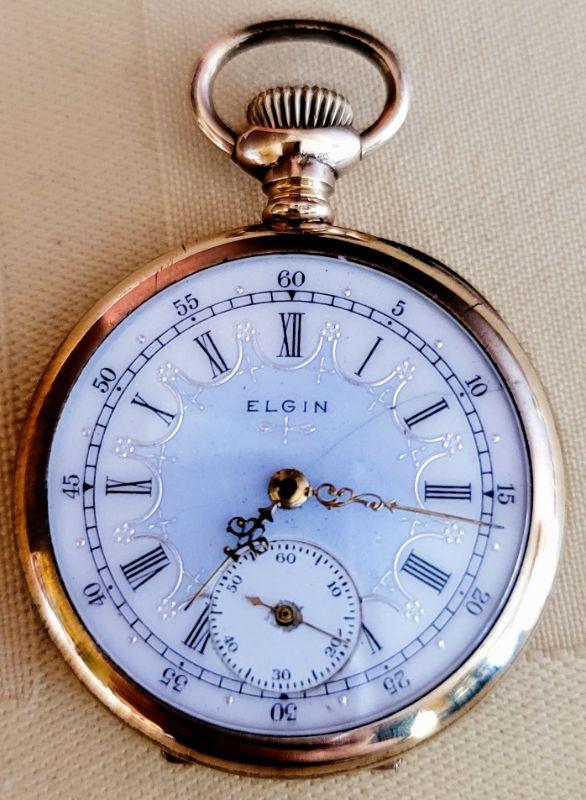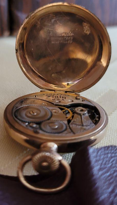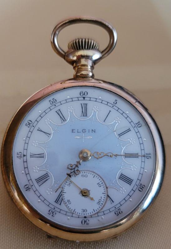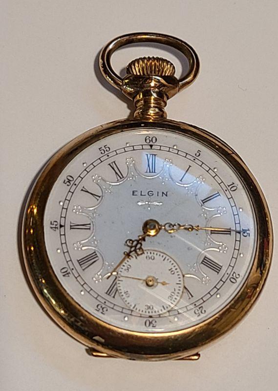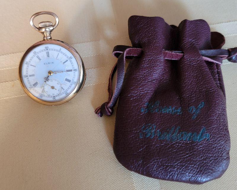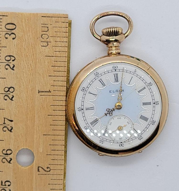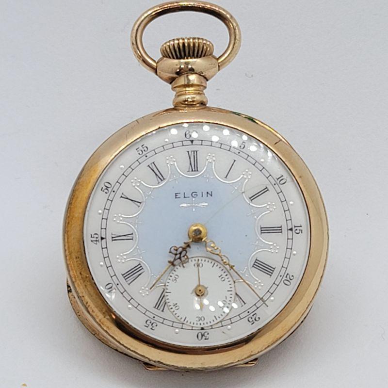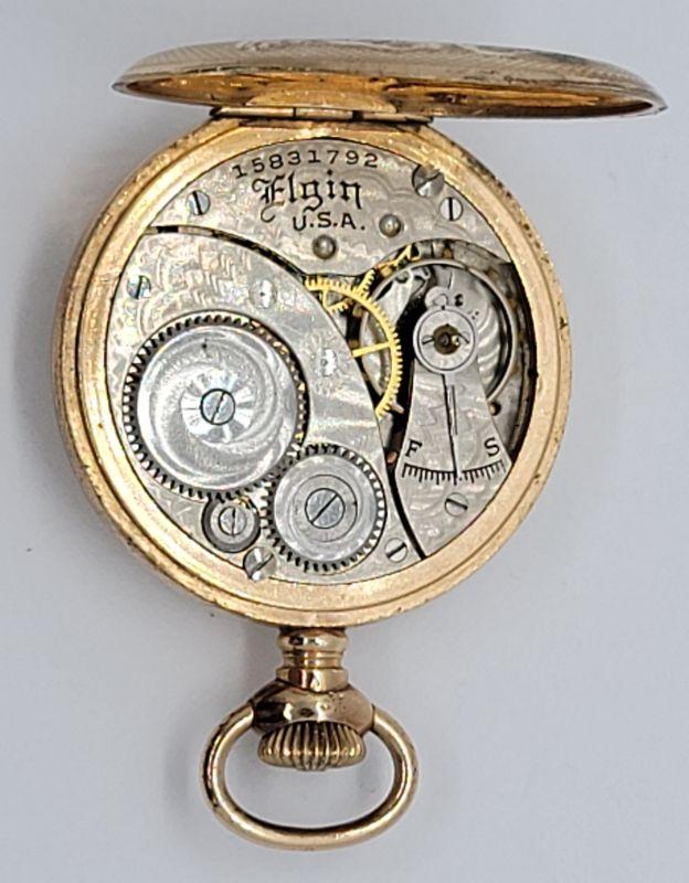 Beautiful Elgin Pocket Watch, works, with leather satchel, art deco nude woman pocket knife as-is and gold filled Bulova watch WINDS AND TICKS! Assorted watch chains and fobs. Please see all pictures for content of the lot, condition of the lot, and measurements if taken. Pictures are the best representation of the items listed and items are untested unless indicated in description. Thank you for looking and have fun bidding!