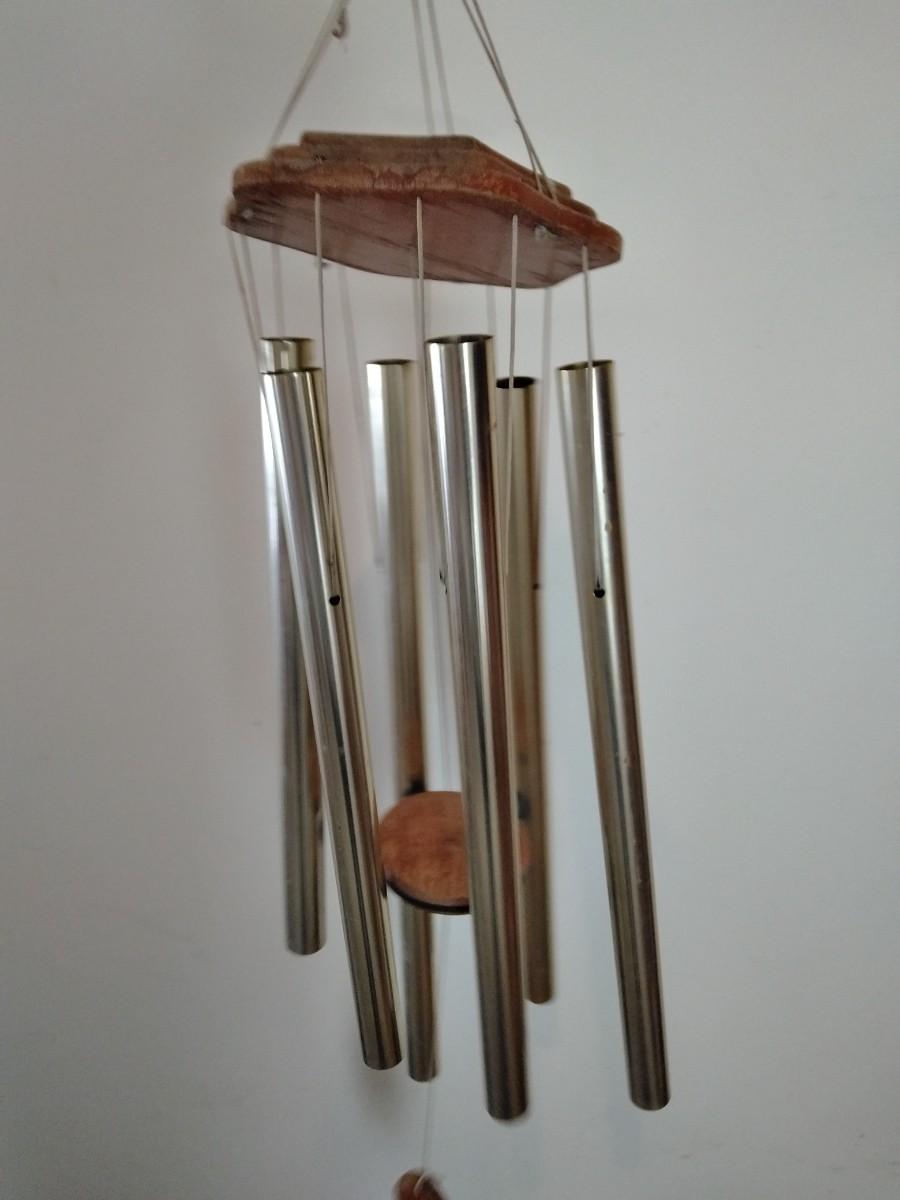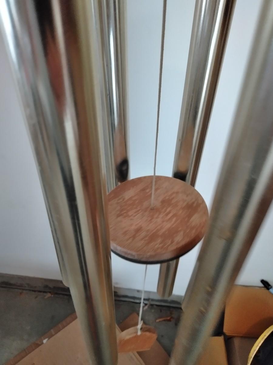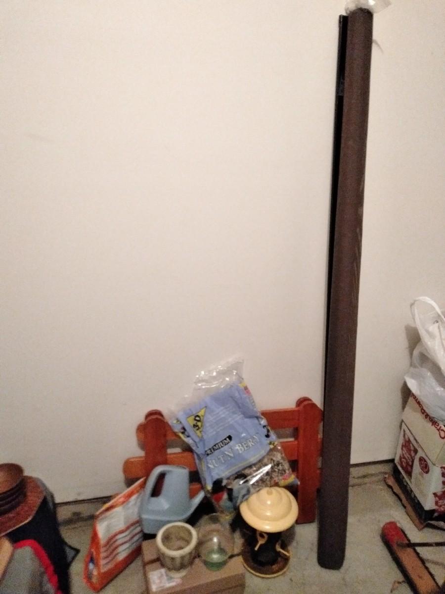 GARDENING ITEMS INCLUDING HAND TOOLS, NUTS AND BERRY PARTIAL BAG OF BIRD FOOD. ANT KILLER, FLOWER POT, LONG SUN SHADE BLIND, WIND CHIMES (THE WOOD IN THE BACKGR0UND AND YELLOW BIRD FEEDER ARE NOT INCLUDED.)