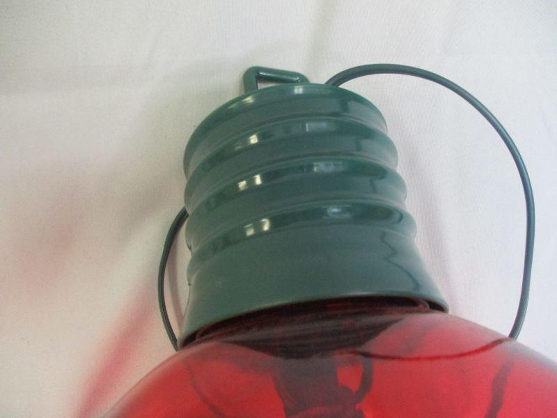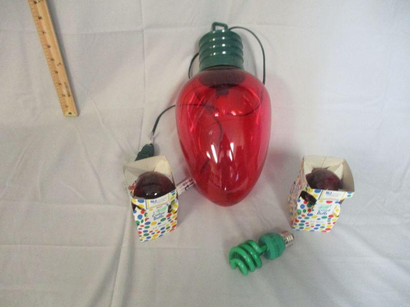 The large Christmas light is about 15" long from the bottom to the top of the hanger piece. I plugged it in and it works. There are two red light bulbs and one green light bulb which all worked when I put them in a regular lamp.