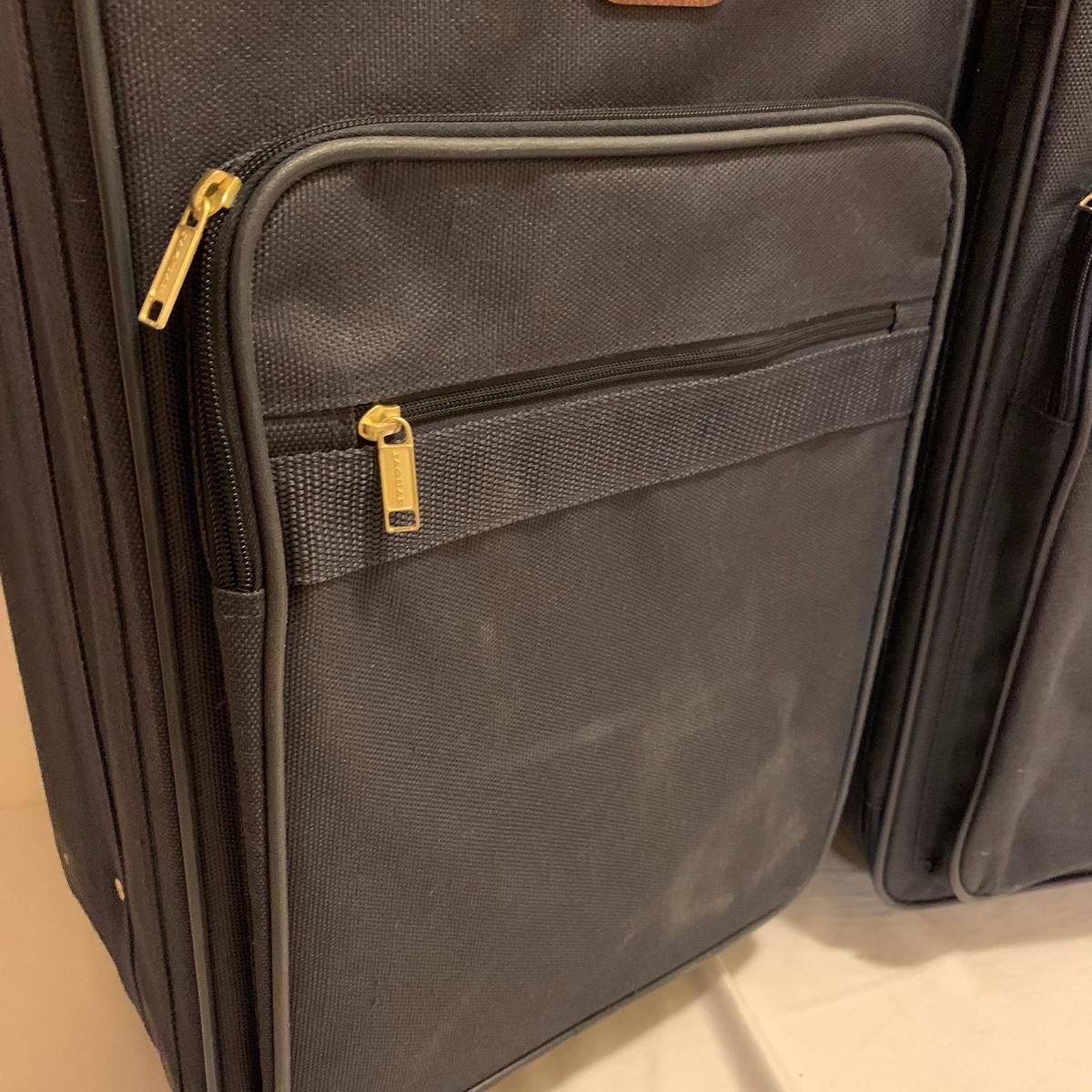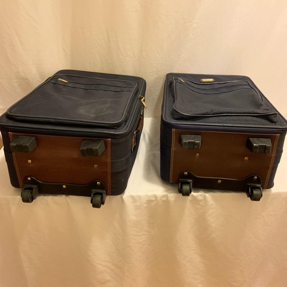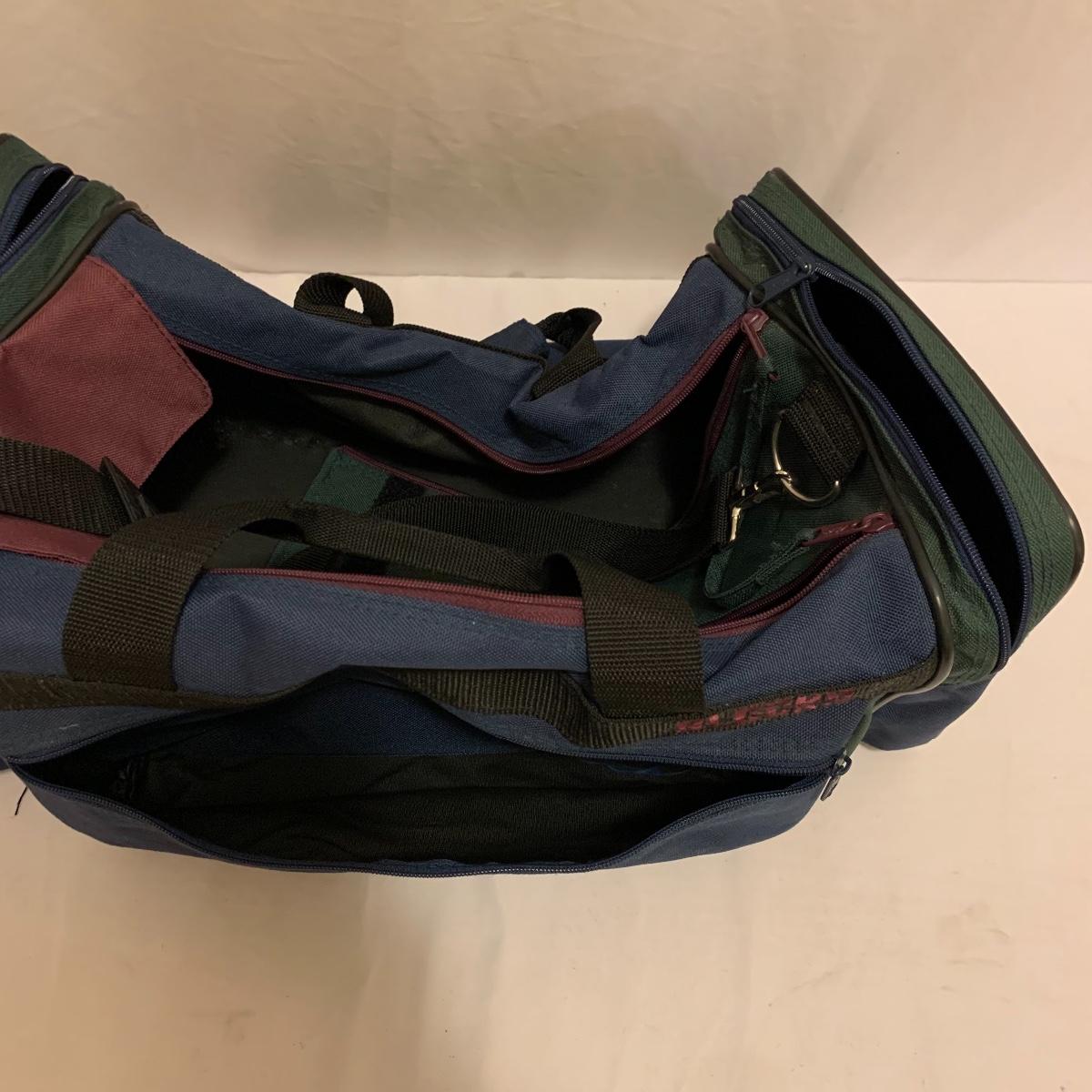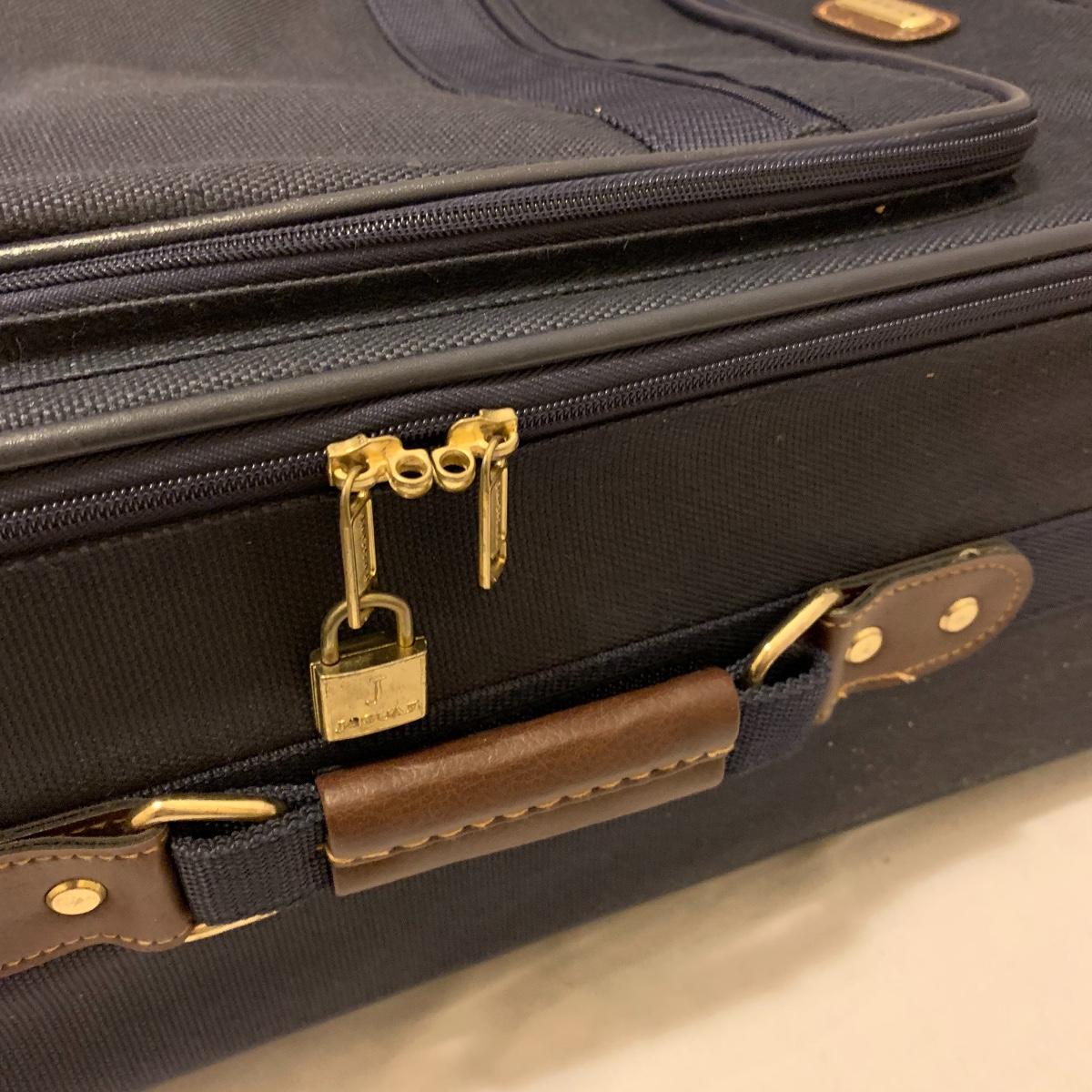 In this lot you’ll find quite a collection of travel accessories! There are two small navy blue carry-on sized Jaguar suitcases that both have multiple pouches and pockets inside and out, wheels, and retractable handles. There’s also a vintage brown hard shell American Tourister suitcase, as well as a Jaguar toiletry bag and a Color Blocks duffel bag. There’s also a metal wheeled luggage caddy. Also included is a variety of travel accessories. There are two new Travel Fresh Personal Sleep Sacks, a Recoton Safe N Sound Travel Converter Kit, a couple of mirrors, flashlights, travel radios, and travel clocks (one is still ticking now!). There are also some Eagle Creek travel pouches and passport carriers and an Appalachian Trail Fanny pack. Local pickup only.