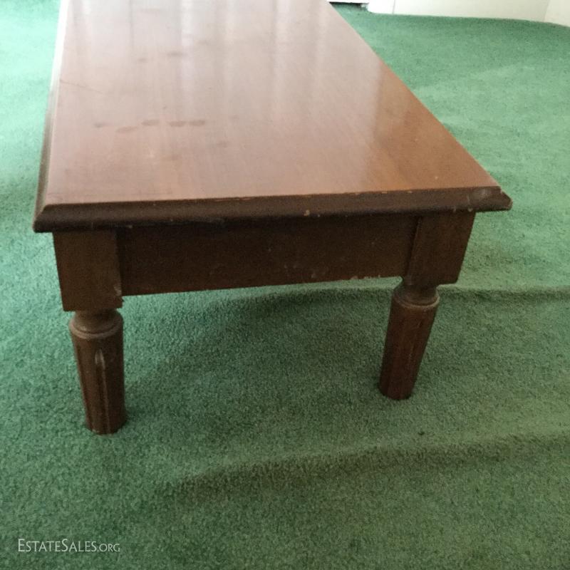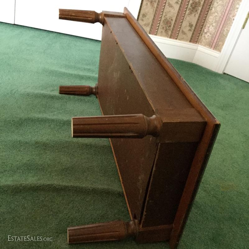 Bench or Low storage table is 30” wide by 10” tall by 14 ½ “ deep (appears to have been shorten).