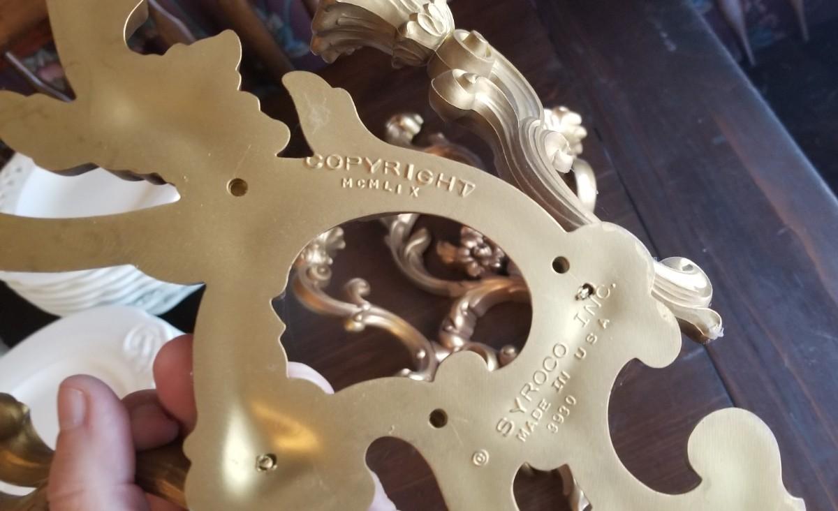 Dated 1959 on reverse - Syrocco Candle Sconces - good condition - 17" tall, 10" wide.