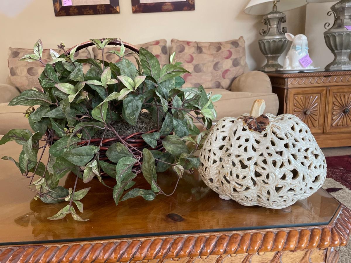 Lot 119  Ceramic Pumpkin & Silk Arrangements
