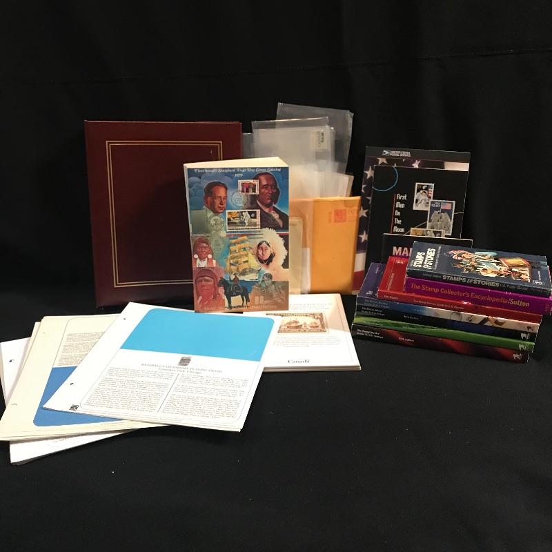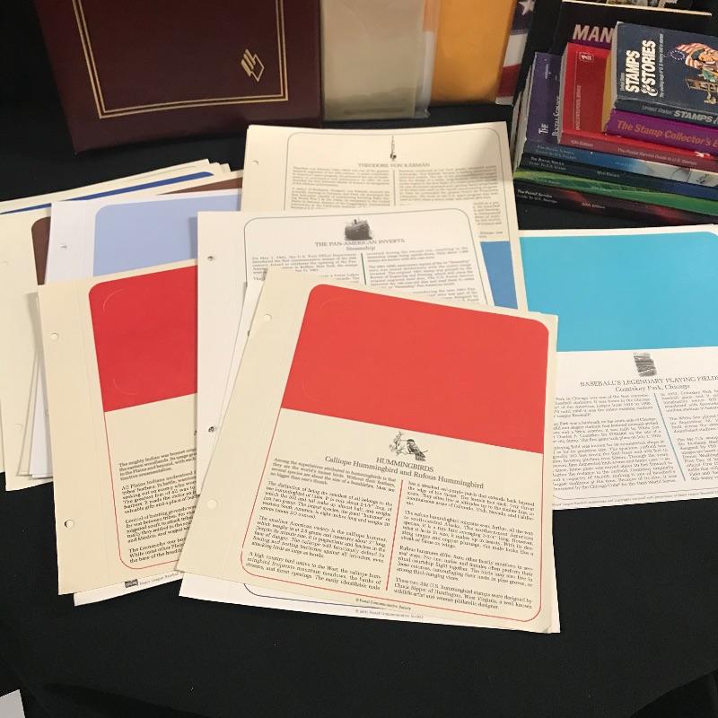 Great beginning or addition to your collection! Eight books with three media booklets, an empty album awaiting the treasures you’ve found in this auction and multiple plastic and wax pouches to keep your treasures safe. Lot also includes multiple card stock album stamp assists. See photos.