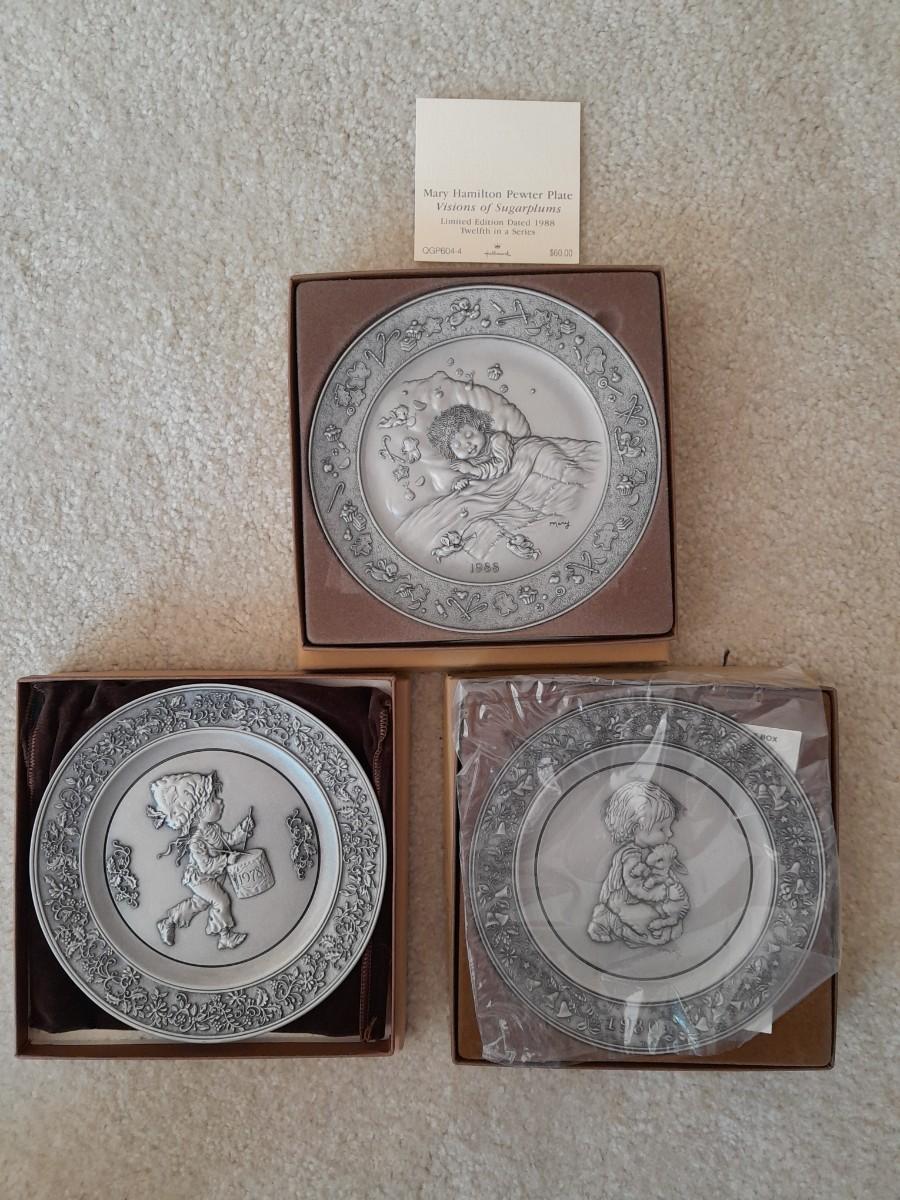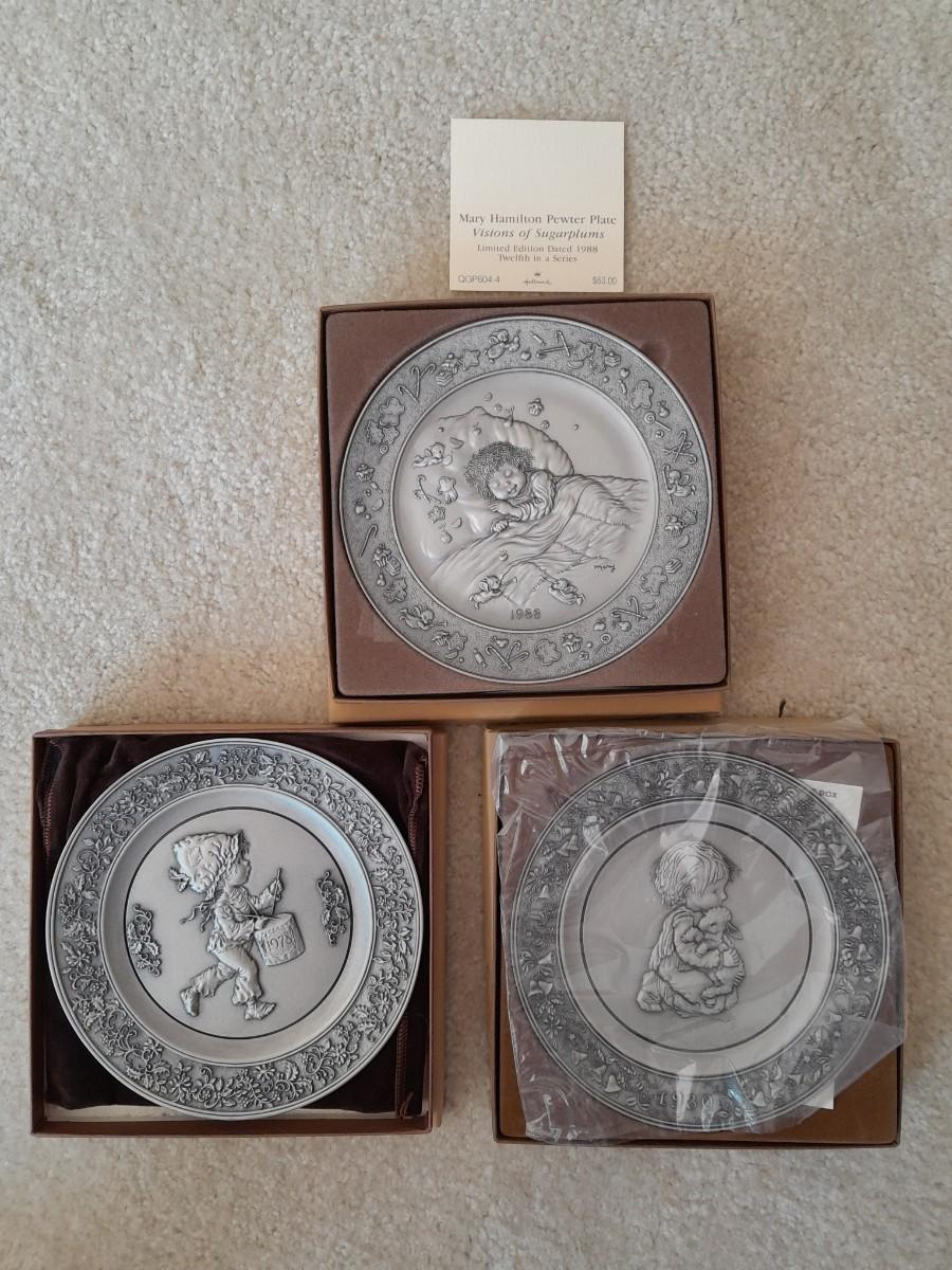 THREE SMALL PEWTER COLLECTIBLE PLATES