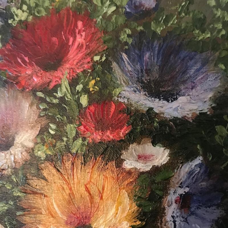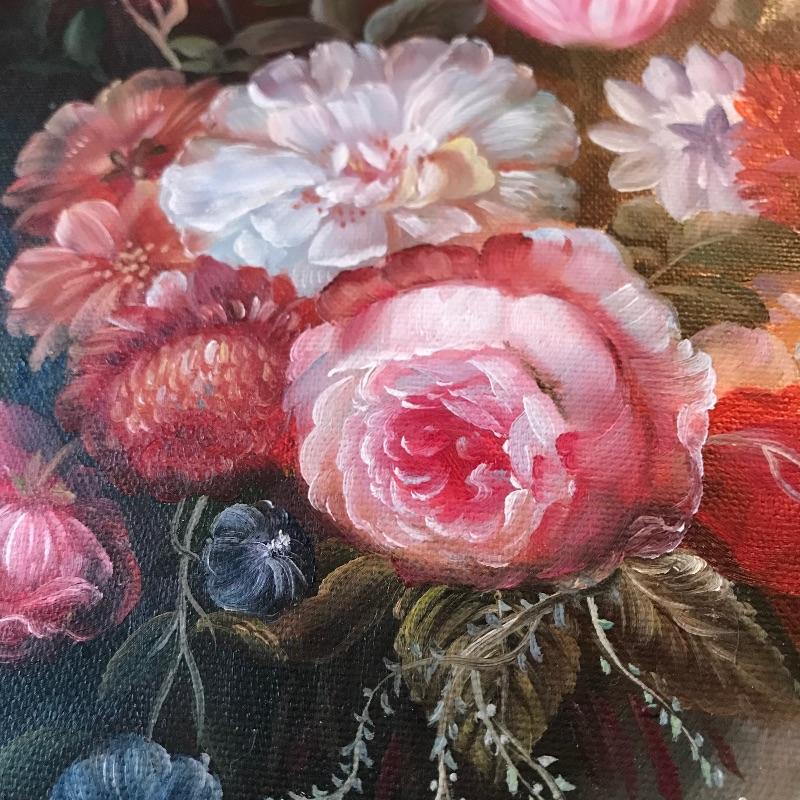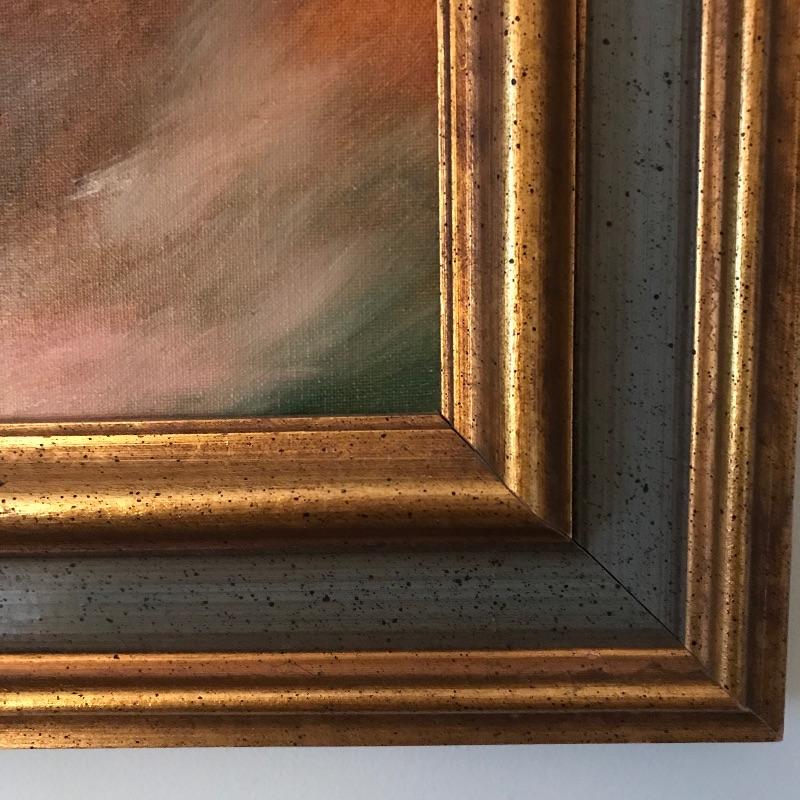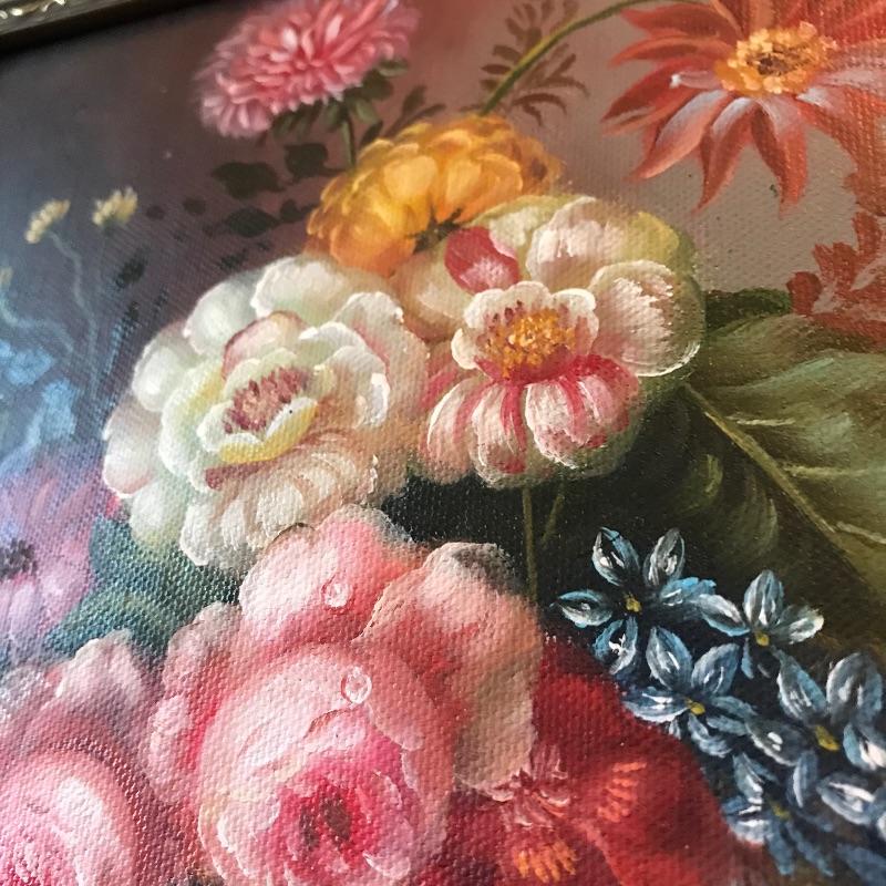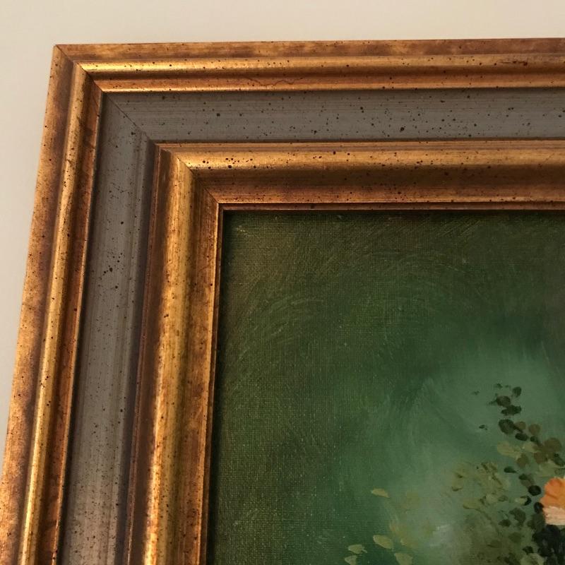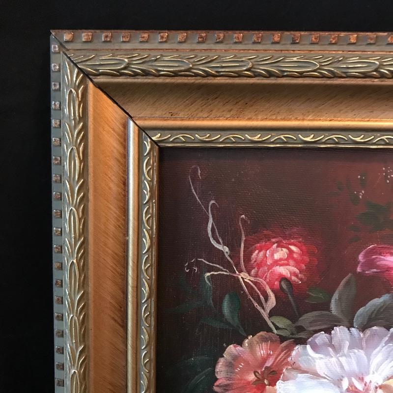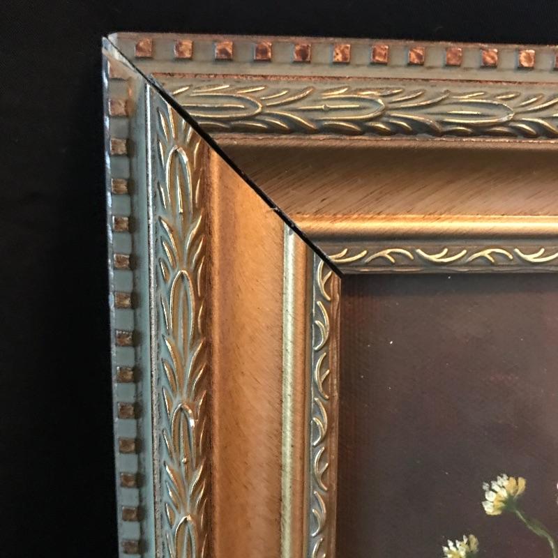 A trio of beautiful still life floral arrangements, signed and framed with painted wood. These beauties look great together, and yet would be stunning on their own as well. The two smaller ones have matching frames (11” x 13”) and complementing coloring. Signatures appear to be L. Earnest and W. Smith. The larger frame measures approximately 21” x 25.25” and has a Ross signature. All three appear to be original and either oil or acrylic paint. Come to the preview to see for yourself! Shipping available. Please call UPS with dimensions at 828-252-6930 for a shipping quote prior to bidding.