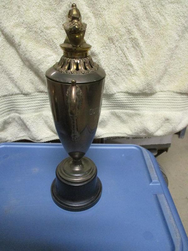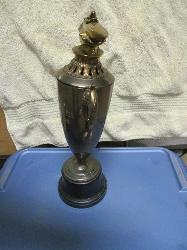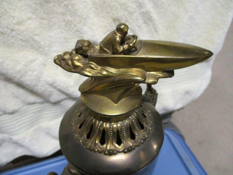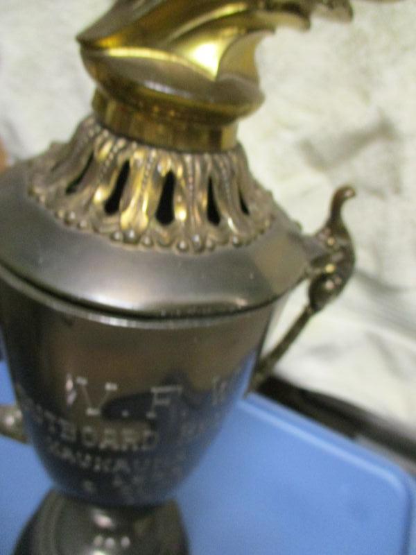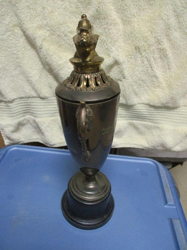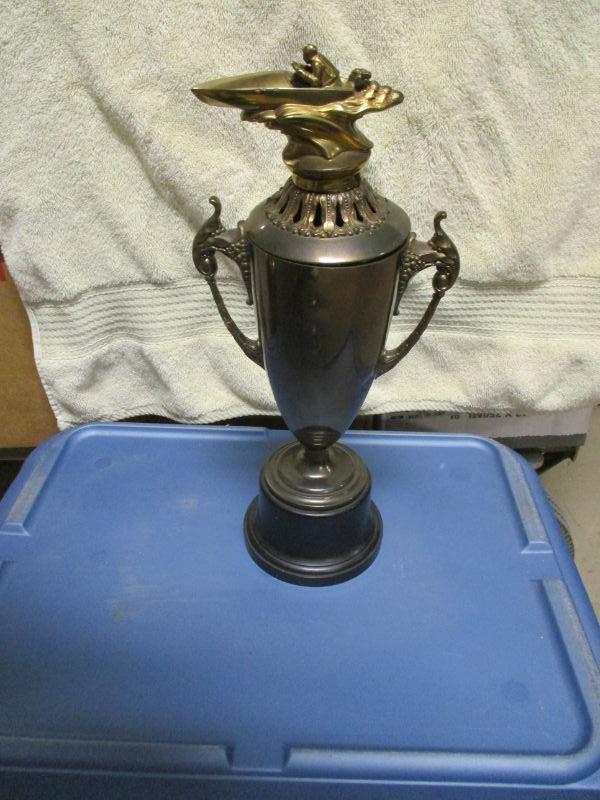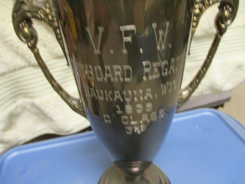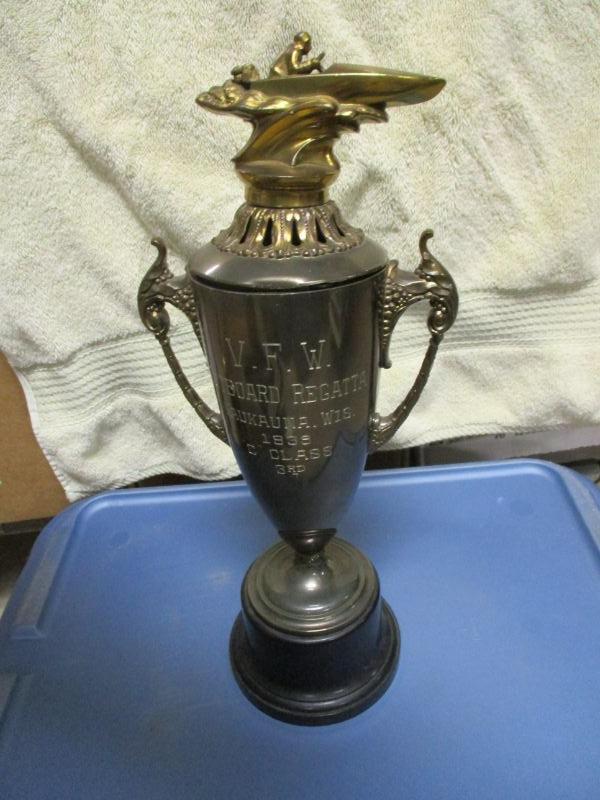 Racing outboard engine hydroplane with a driver boat ship trophy