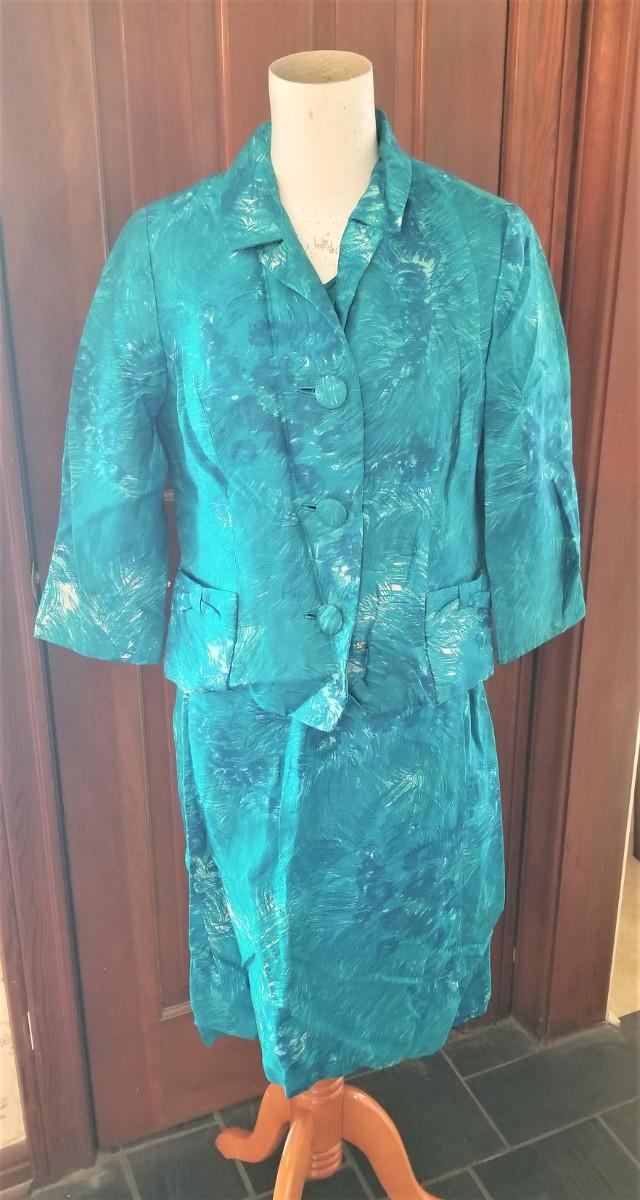 Another great 50's/60's bit of vintage clothing. Super nice ladies suit (dress and matching jacket) with label from Guy Mayer (ain't dere no more). Polished cotton, very small (prob size 2-4). Great condition.