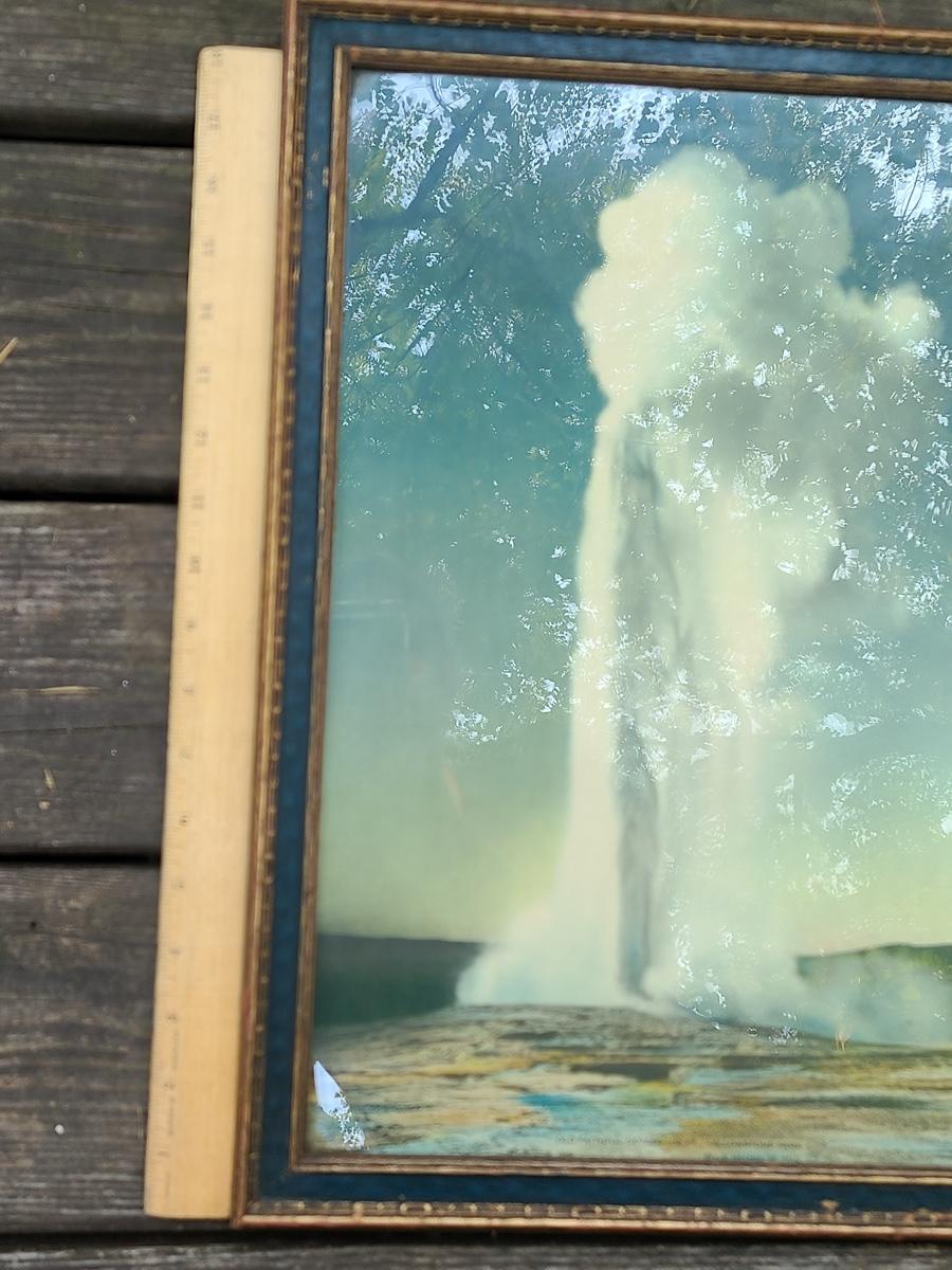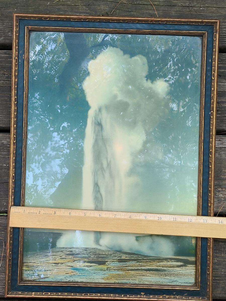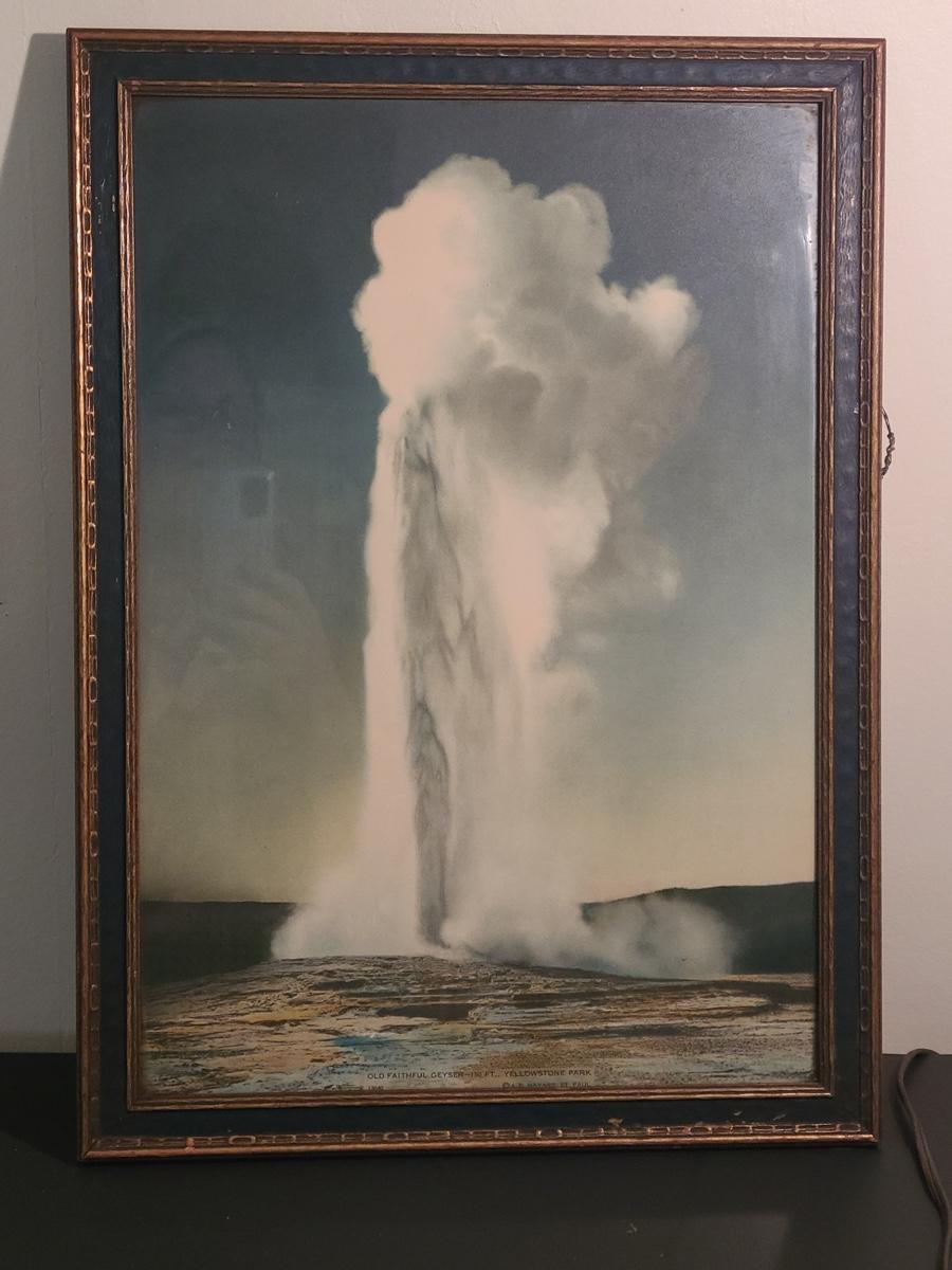 The colors in this Litho are amazing and pop! The dark frame with the blues and stark white from the Geyser makes it look alive in certain lights. Excellent piece of art, and hard to find in this larger print size. Brought in different lights to show the hues. This would look amazing in any room of the home, and a great gift for someone who lives in the area! Please see all pictures as they are the best representation of the item/s in the lot, the condition of the lot, and show measurements if taken. All items are sold as-is. Thank you for looking and have fun bidding.