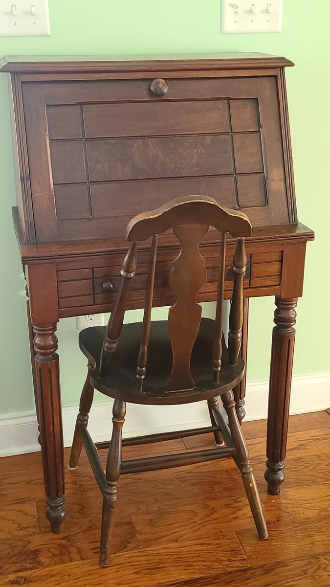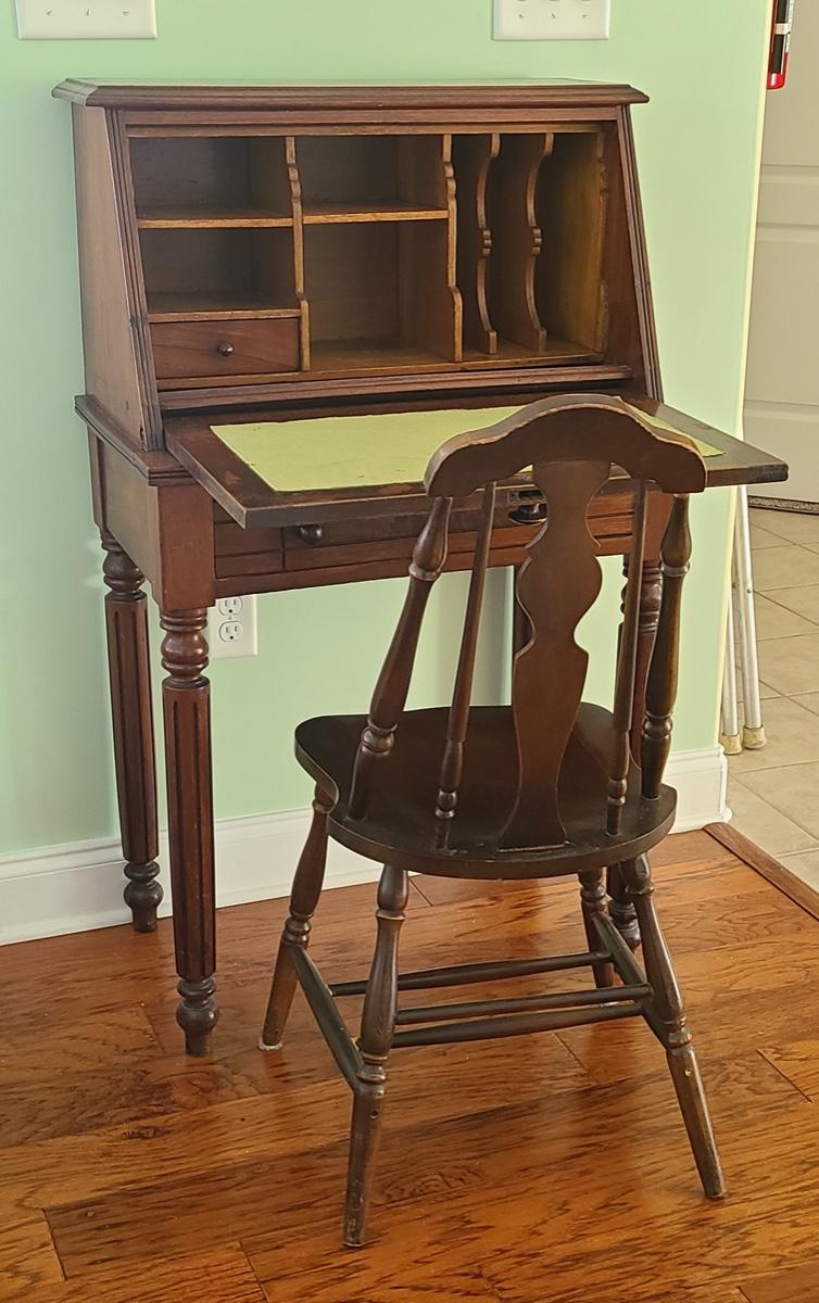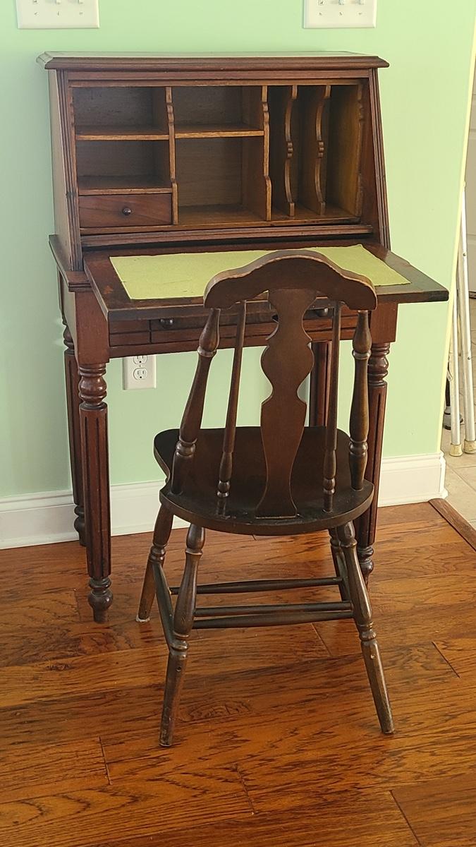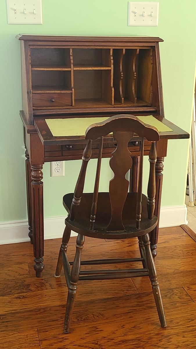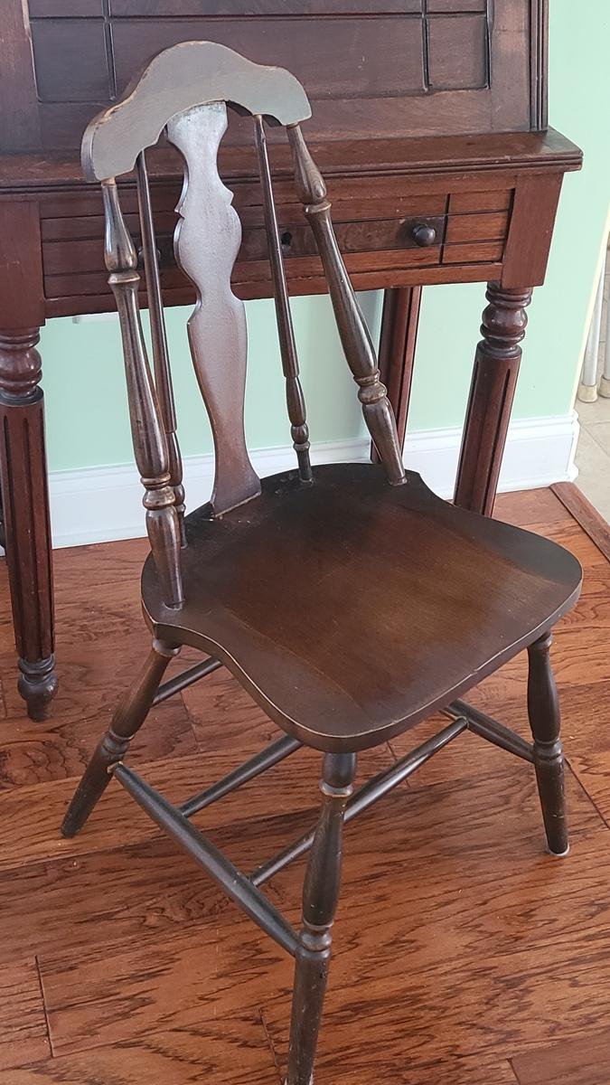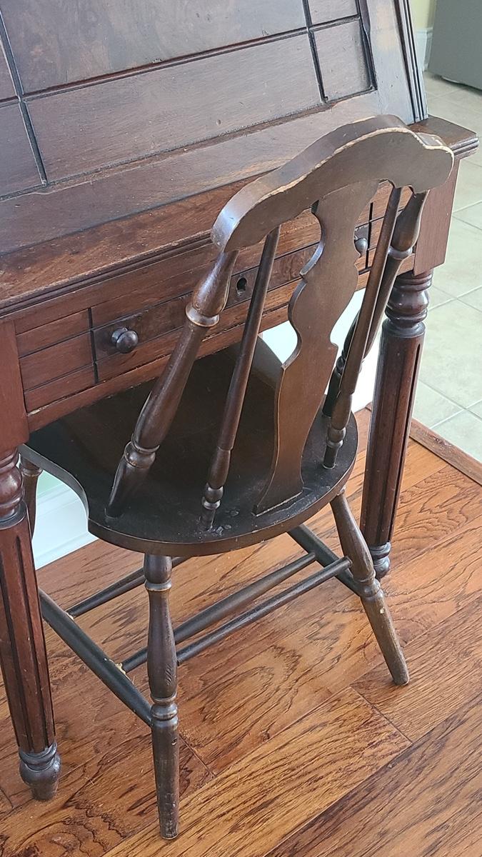 This unique piece shows a lot of craftsmanship, solid wood, has inside storage cubbies, wood carved details on front, and is solid and sturdy! The chair is vintage but has been repaired/reglued at base of legs. Perfect accent piece in any home! Please see all pictures for content of the lot, condition of the lot, and measurements if taken. Pictures are the best representation of the items listed and items are untested unless indicated in description. Thank you for looking and have fun bidding!
