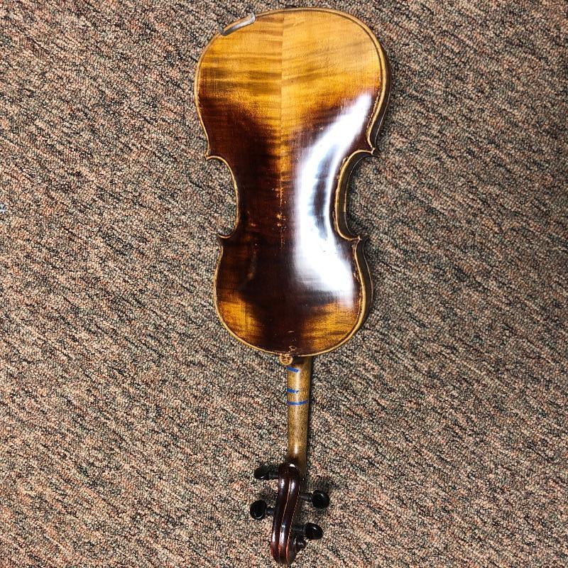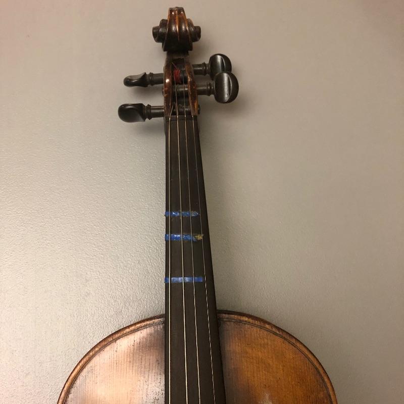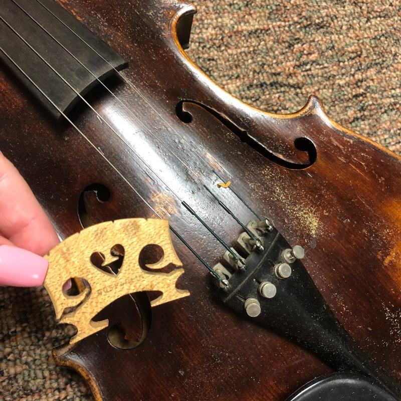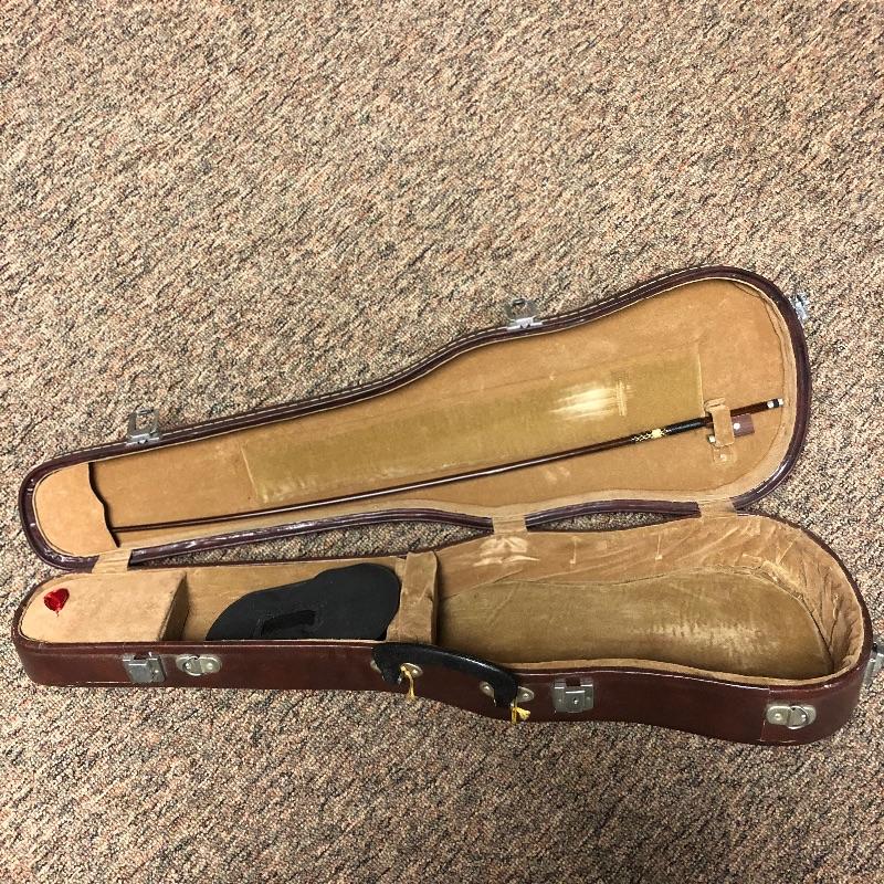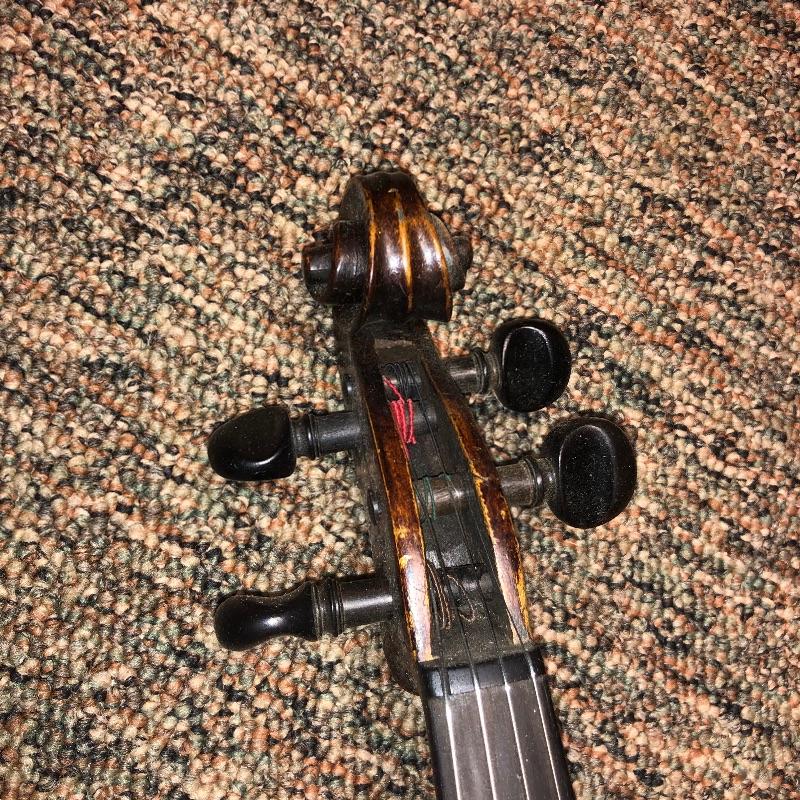 This lot includes a violin and it’s case. In the case are the bow and a cassette tape. The bridge on the violin has come loose. The bow has no hair. Violin case measures 31.5” in length. Owner claims the violin is German and over 100 years old. Shipping avaialable.