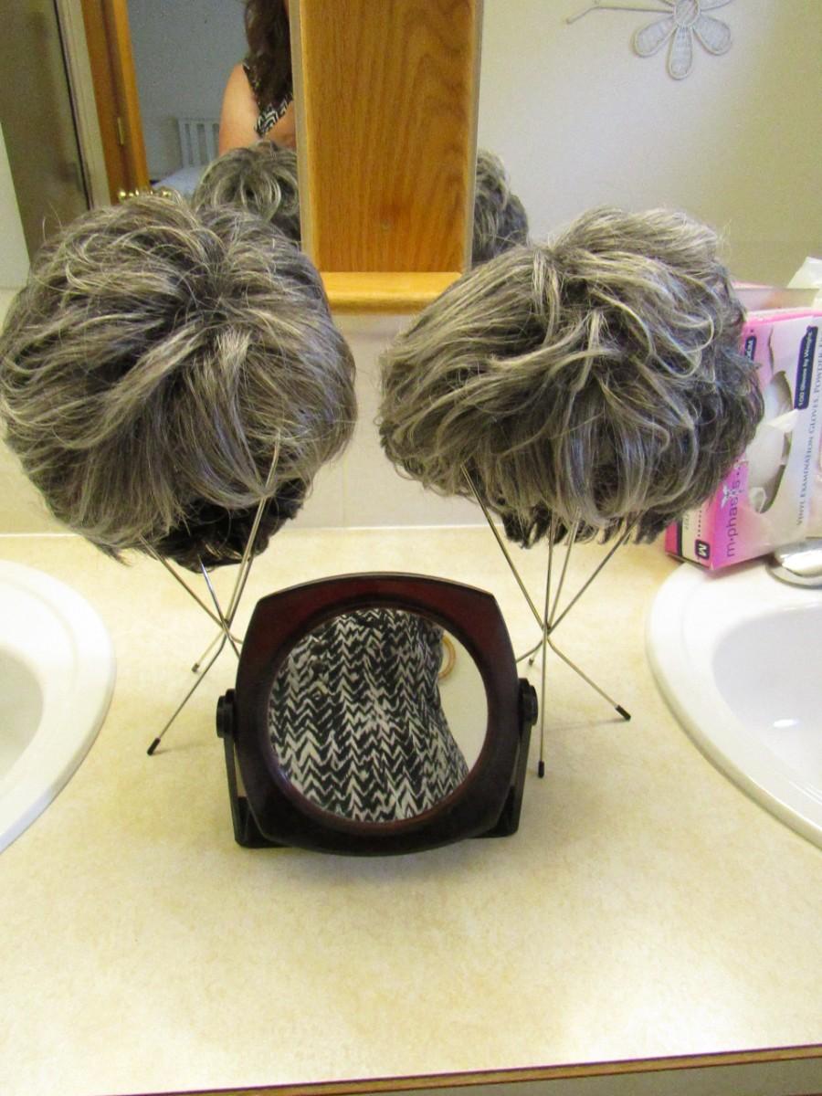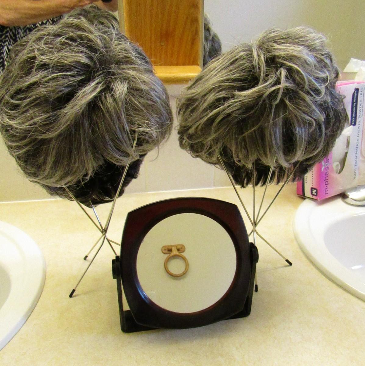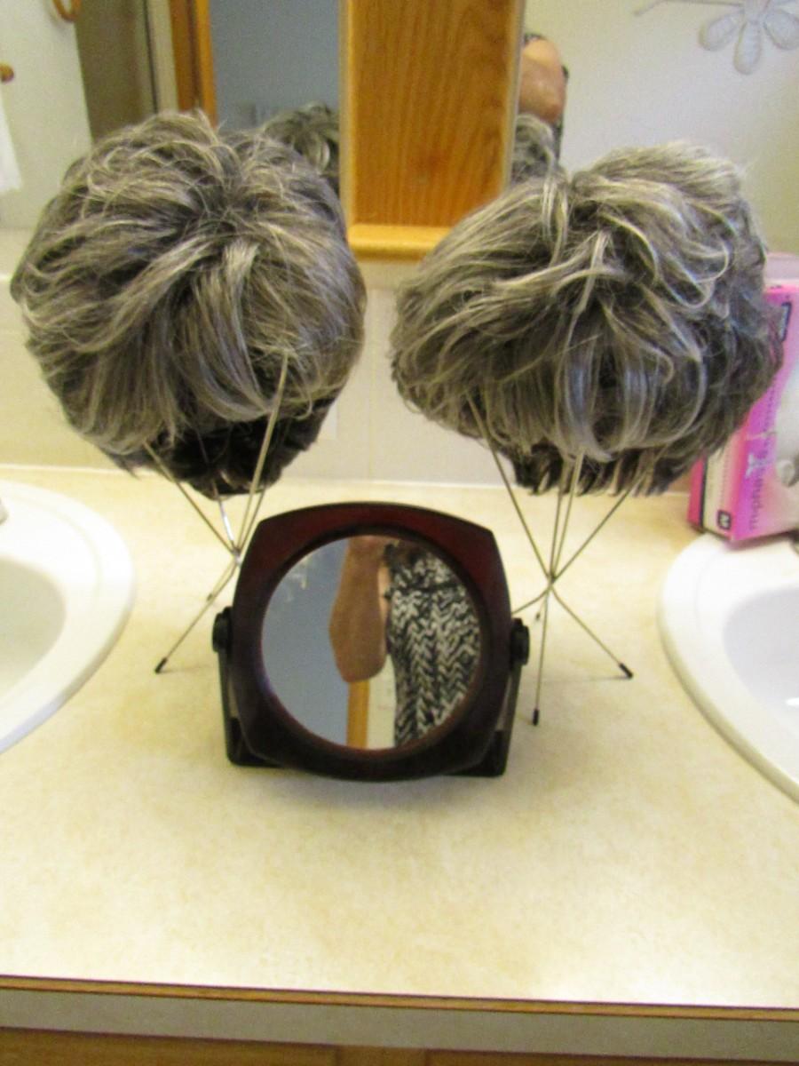 2 WIGS, 2 HOLDERS AND 2 SIDED MAGNIFYING MIRROR