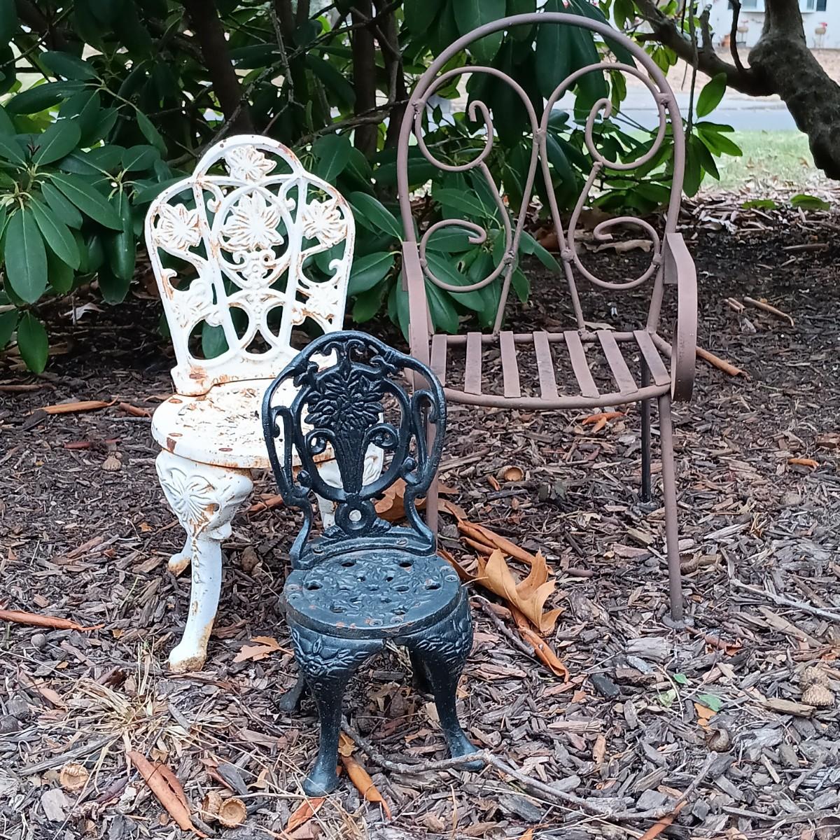 LOT 234: Set of (3) Miniature Metal Lawn Ornament Chairs
