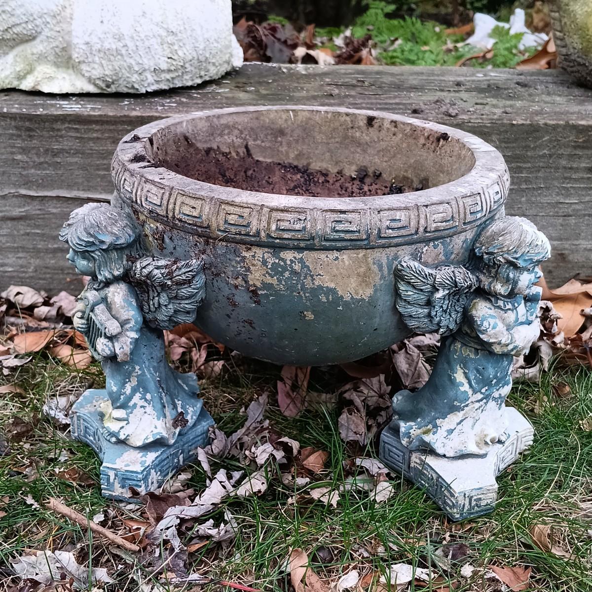 LOT 242: Lawn Ornaments - Concrete Rabbit, Pottery Turtle & Pottery Plant Holder