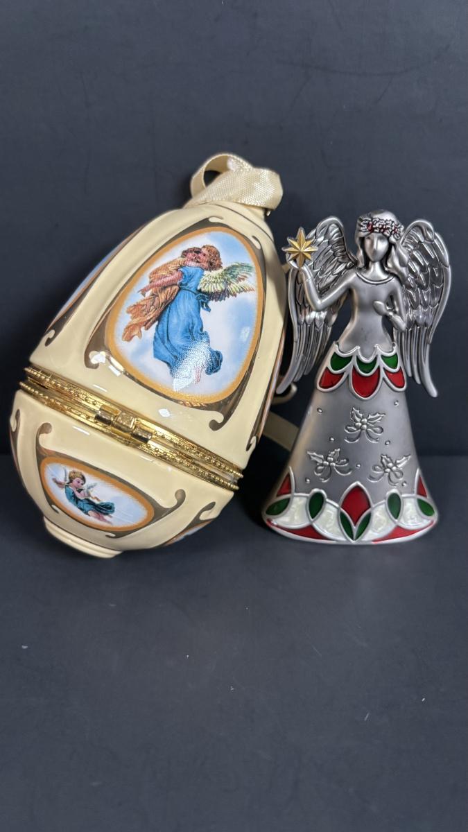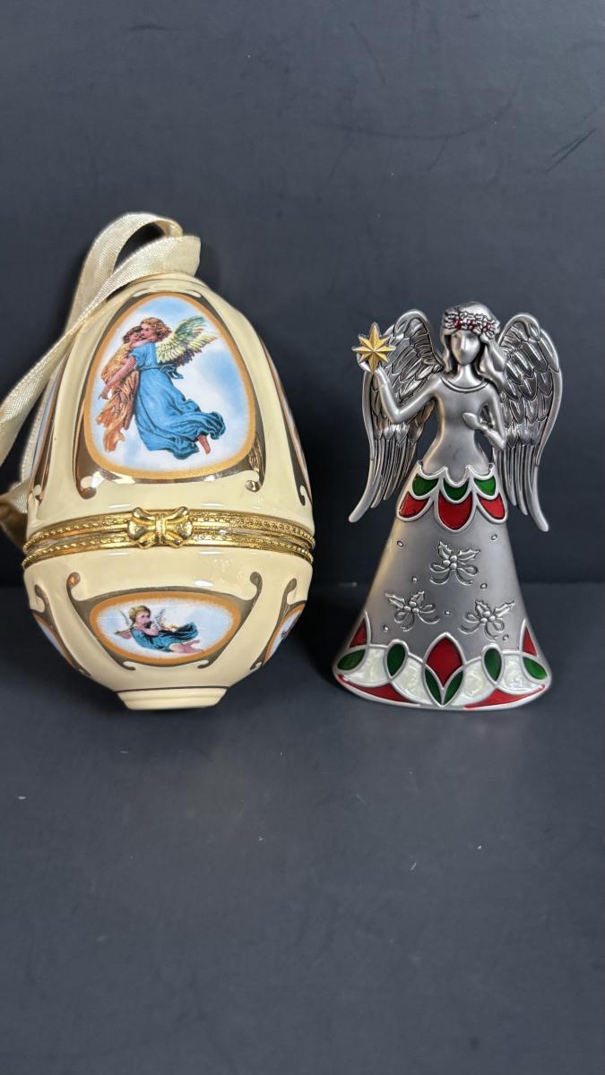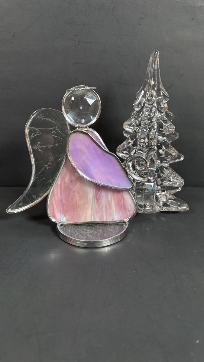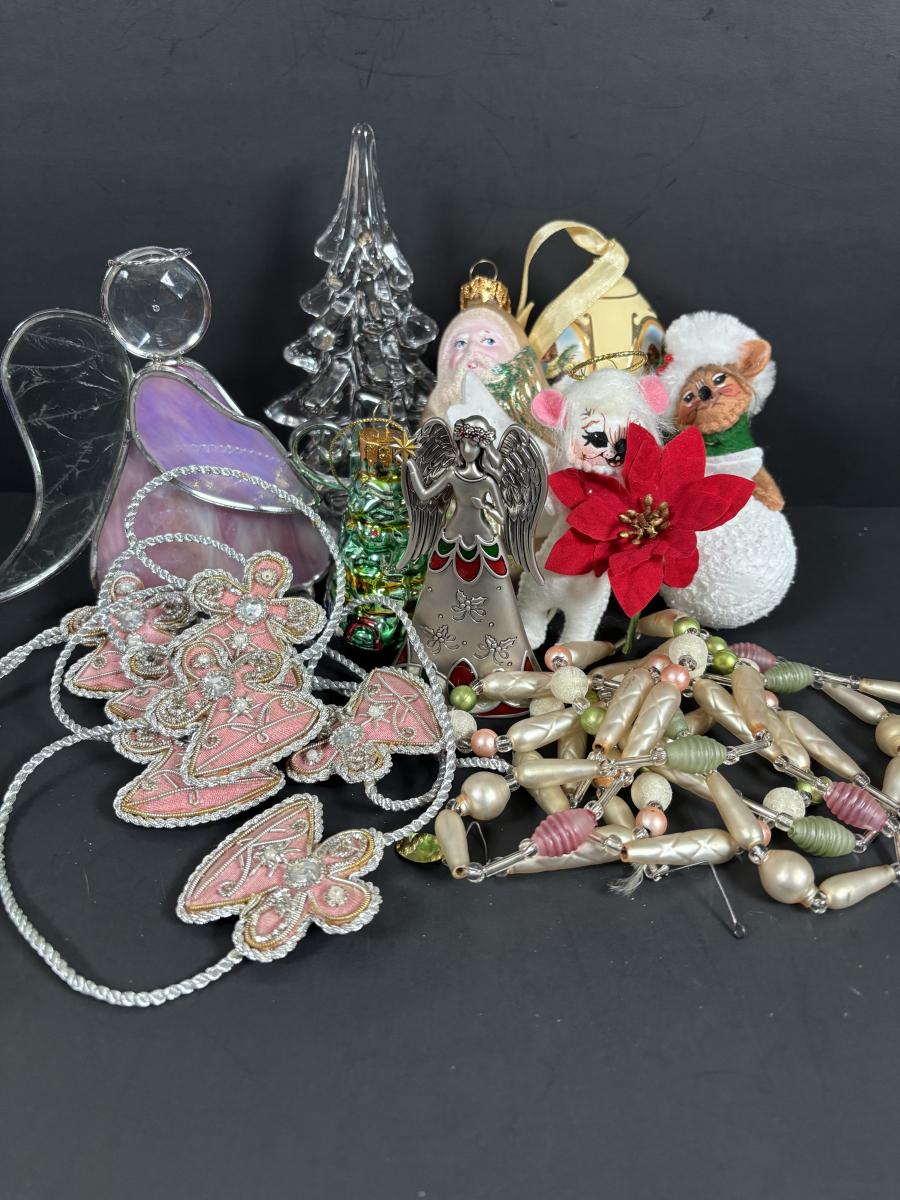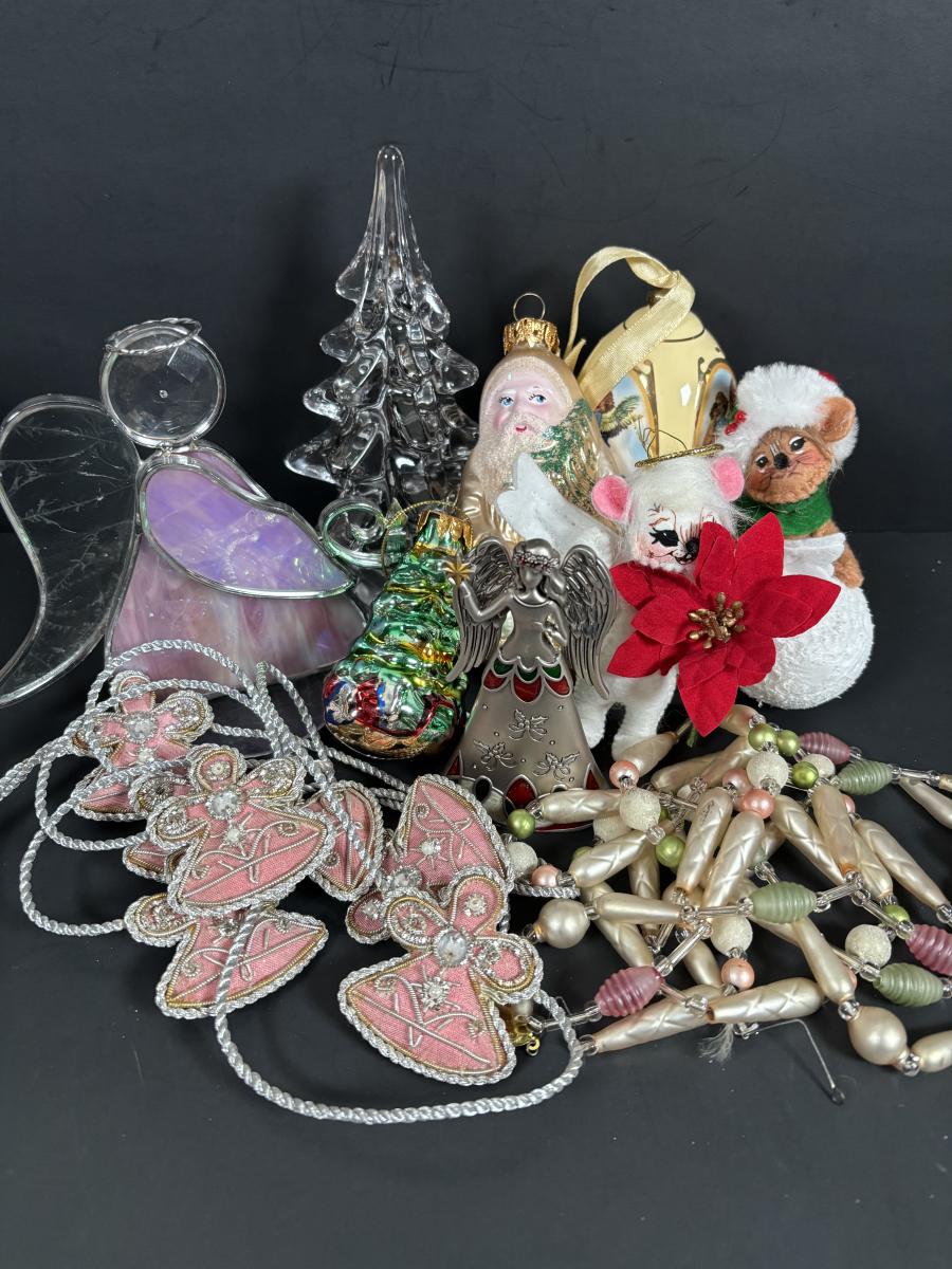 LOT 245: Annalee Ornaments, Stained Glass Angel, Crystal Tree, Father Christmas Ornament & More