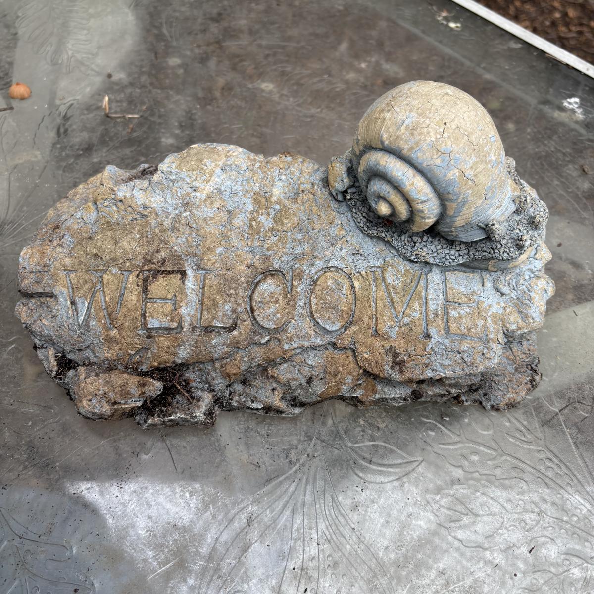 LOT 251: Garden Welcome Sculpture w/Snail and Ceramic Frogs