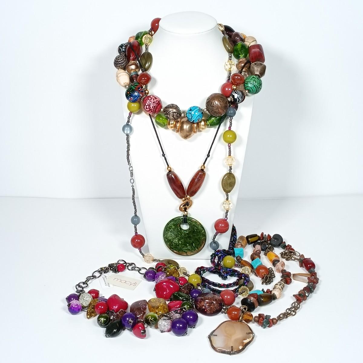LOT 262: Beaded Costume Jewelry- Clay, Lucite & Stone