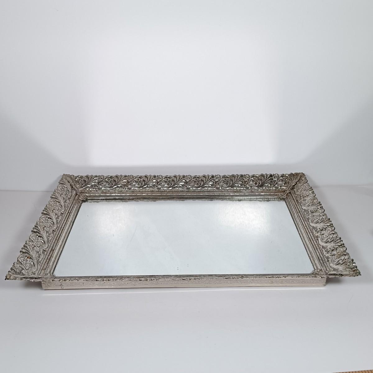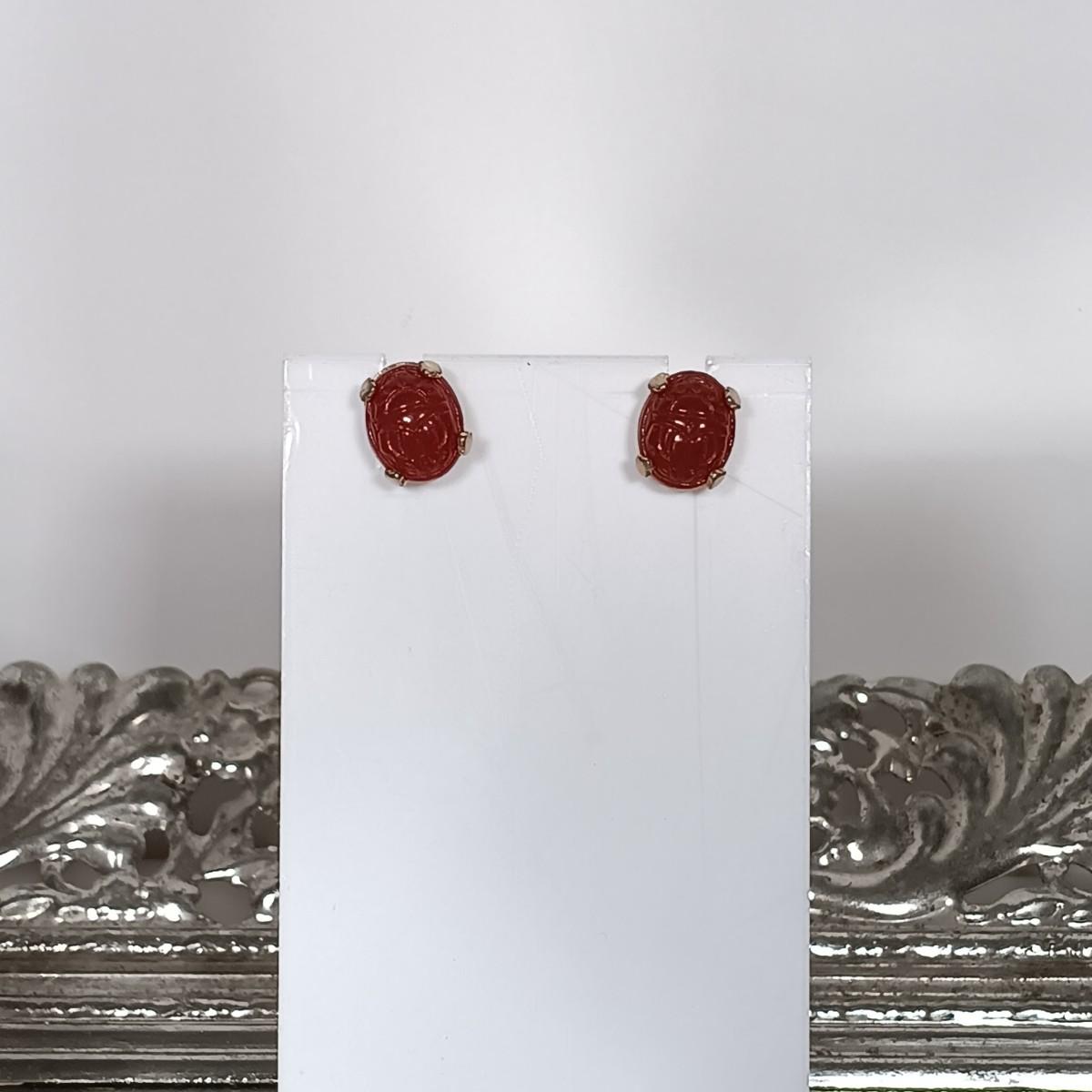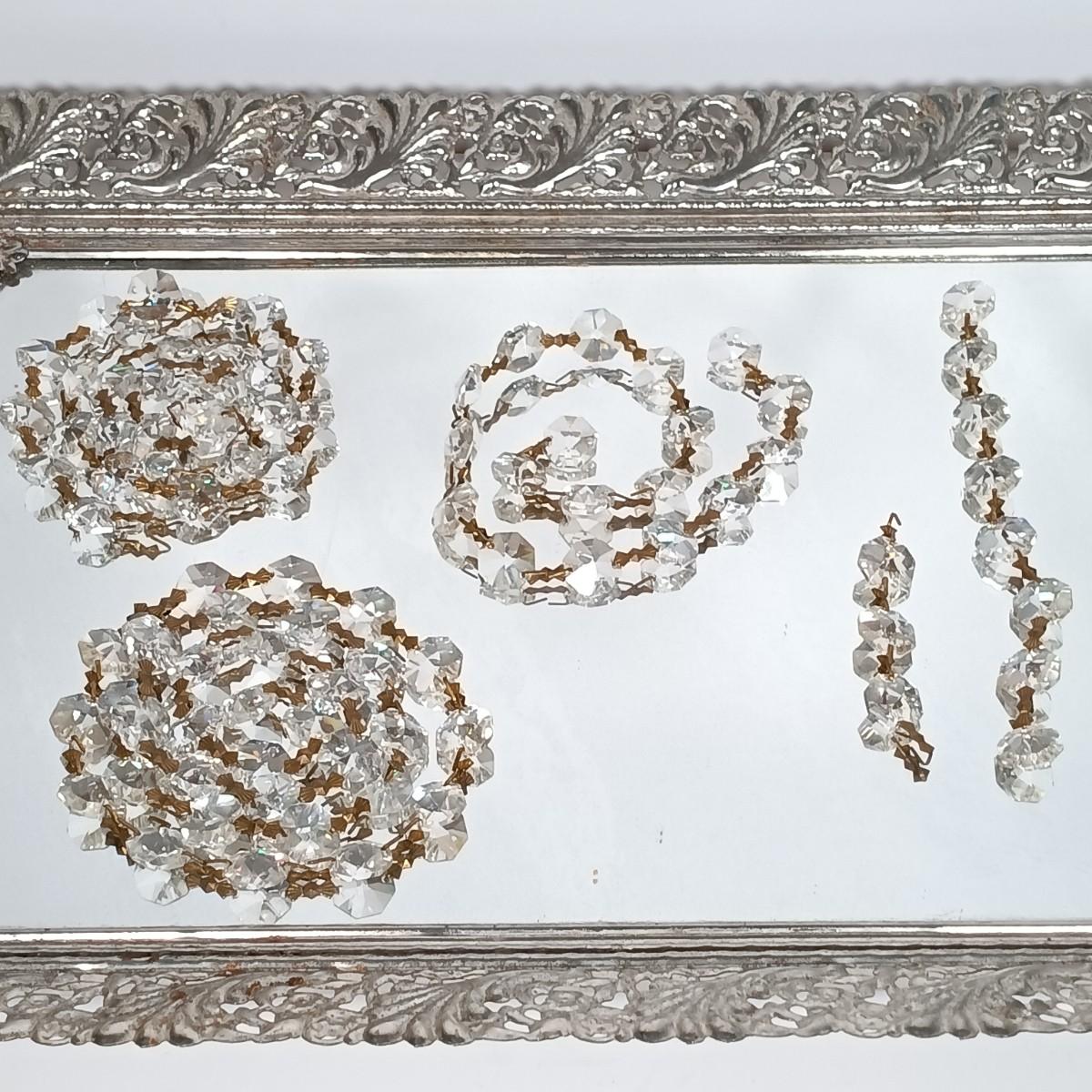 LOT 263: Scarab Stone Earrings, Silver-Tone Cuff, Crystal Bead Strands & Mirrored Tray