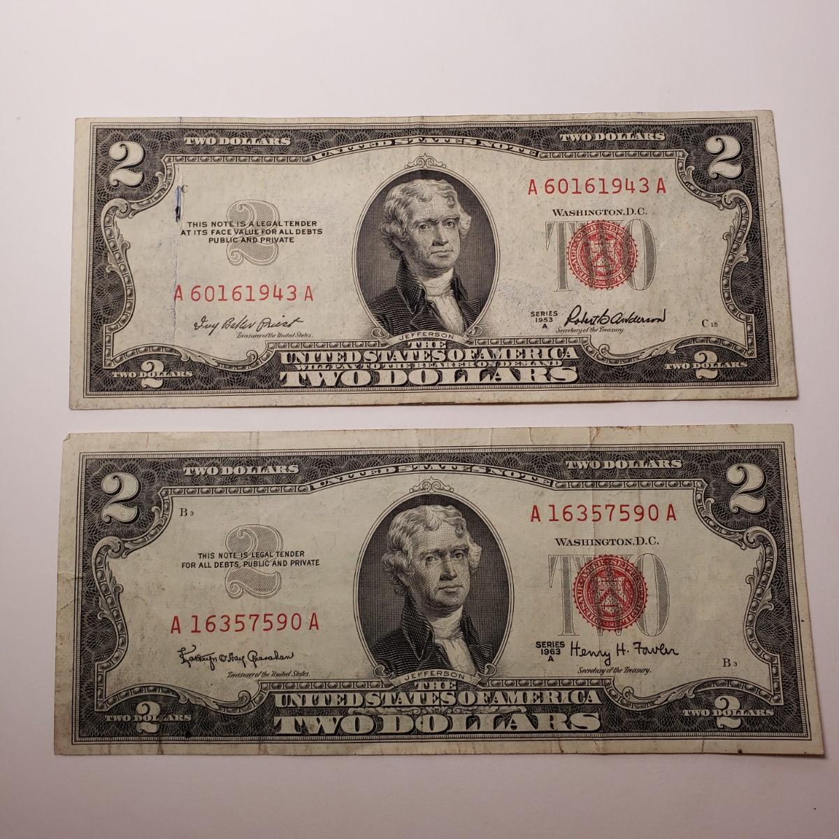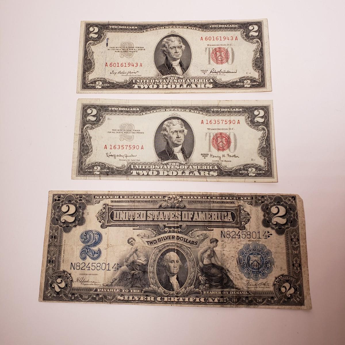 LOT 265: Large $2 1899 Silver Certificate & (2) $2 Bill Red Seal Notes