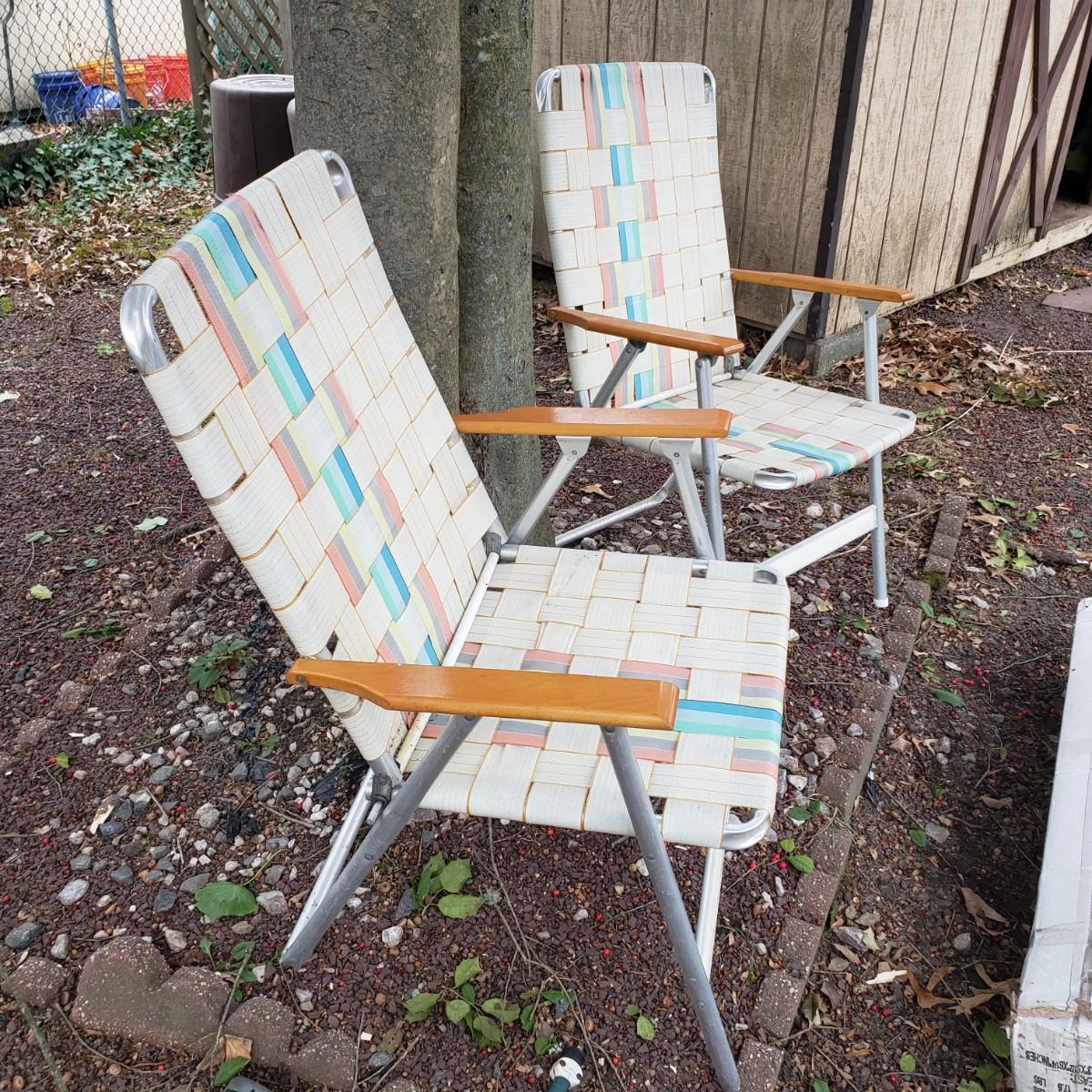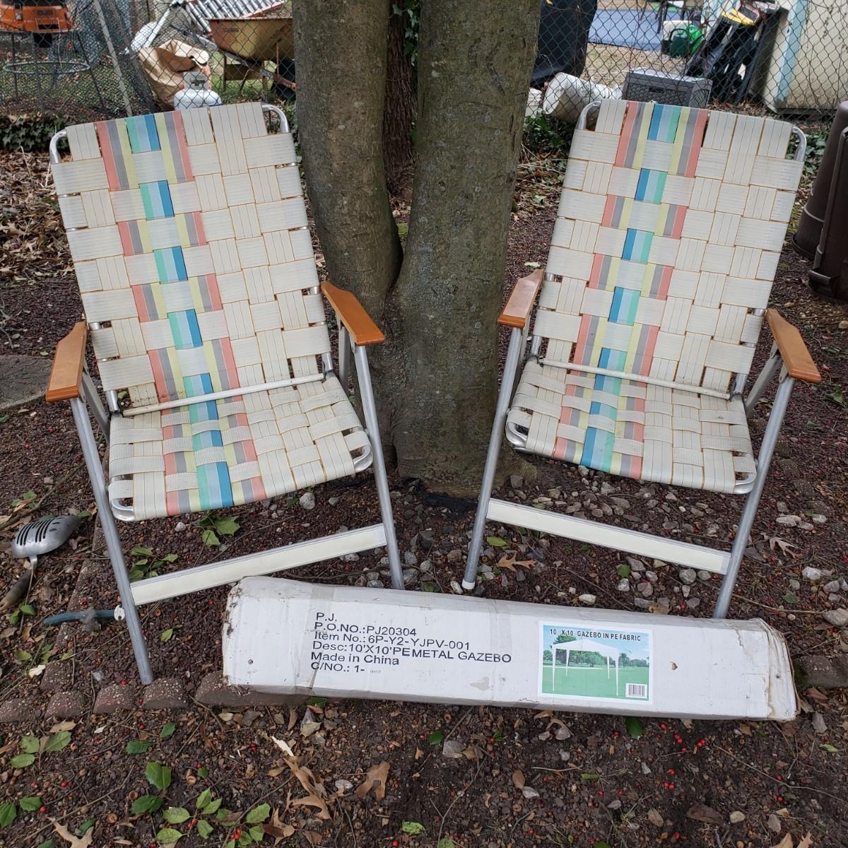 LOT 269: New 10 Ft Gazebo in Box with Pair of Vintage Lawn Chairs