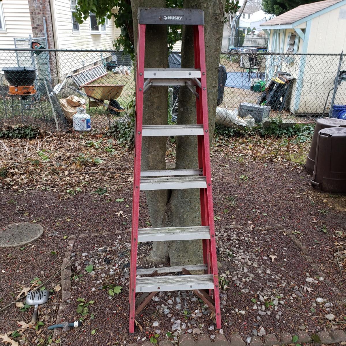 LOT 270: True Temper Steel Wheelbarrow & Husky 6 Ft Ladder