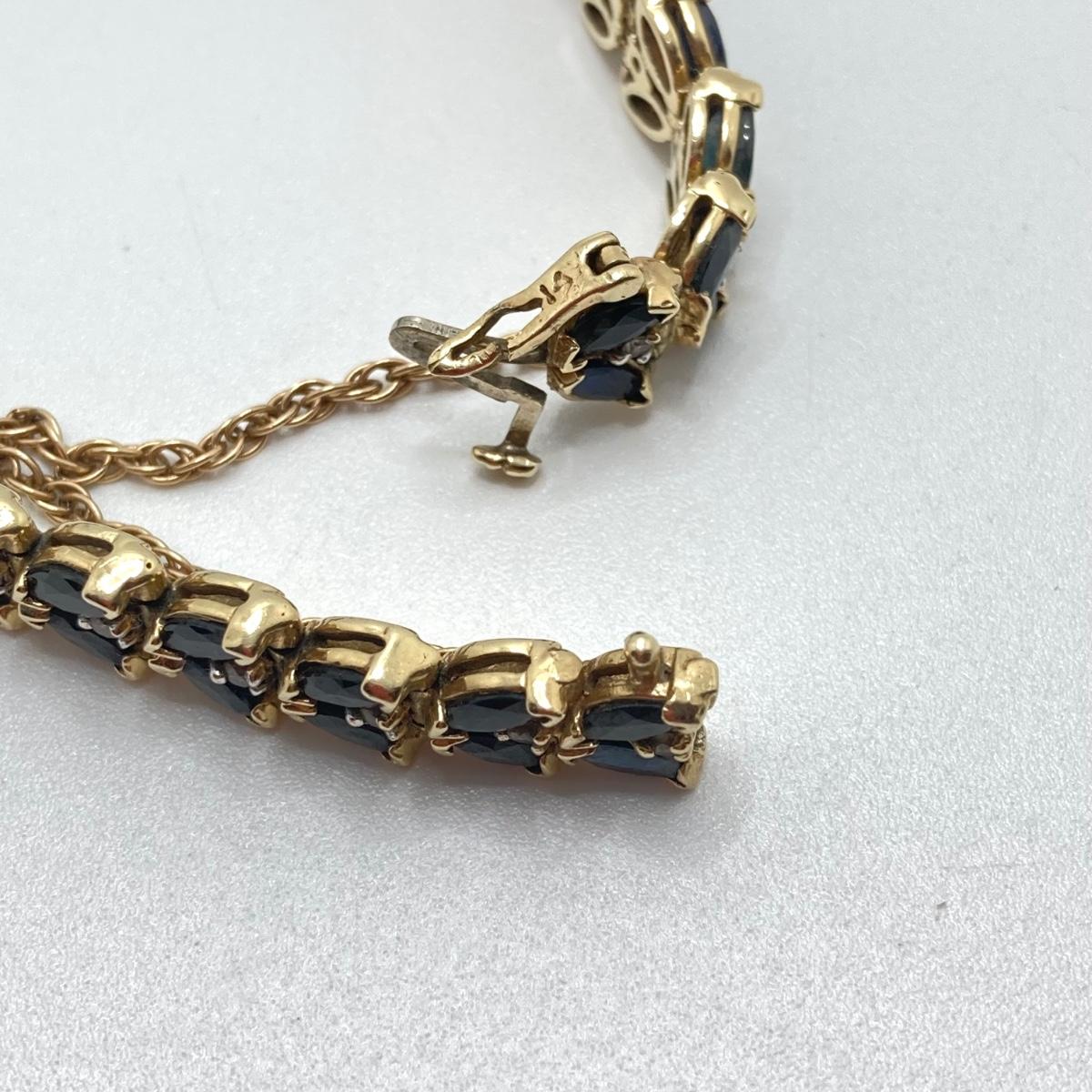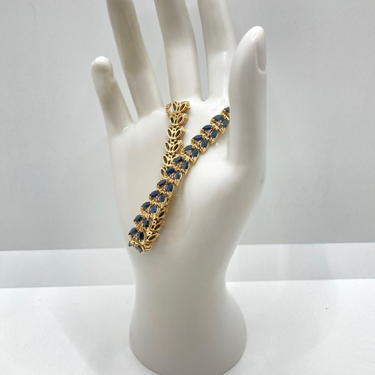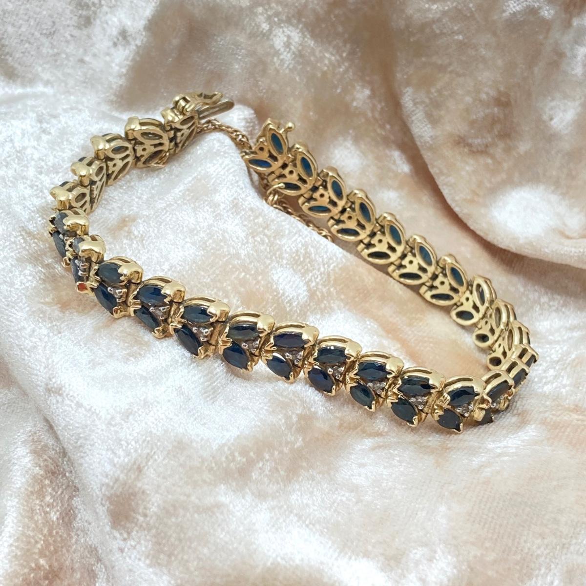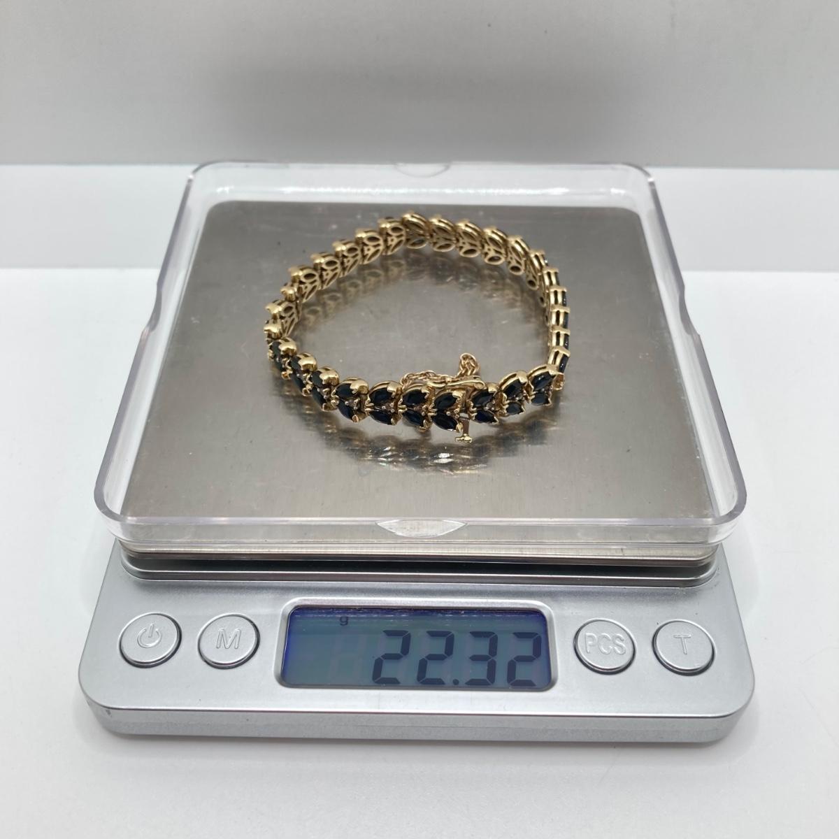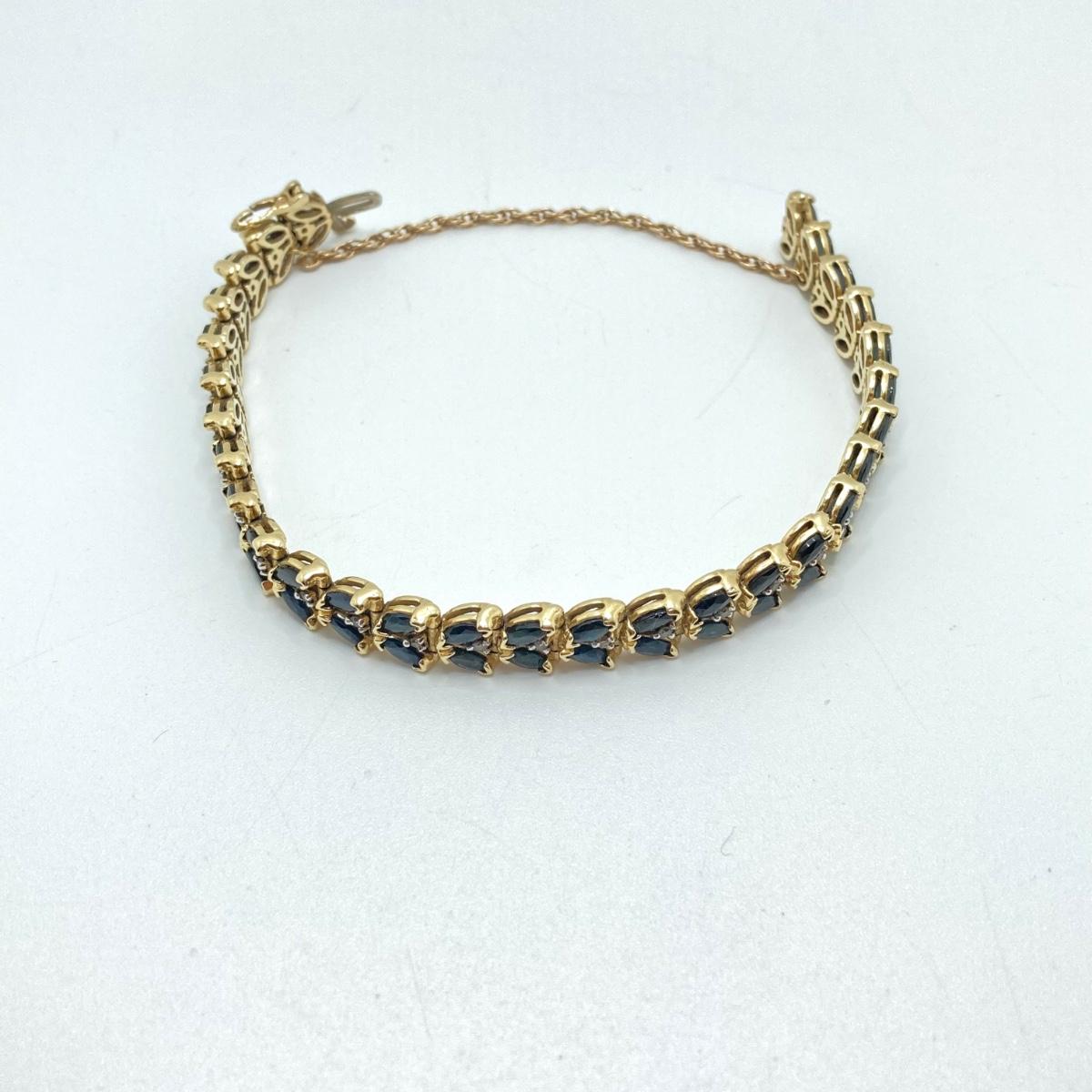 LOT 271: GORGEOUS 14K Yellow Gold Blue Sapphire and Diamond Accent Tennis Bracelet with Safety Clasp - 14k gtw 22.32g