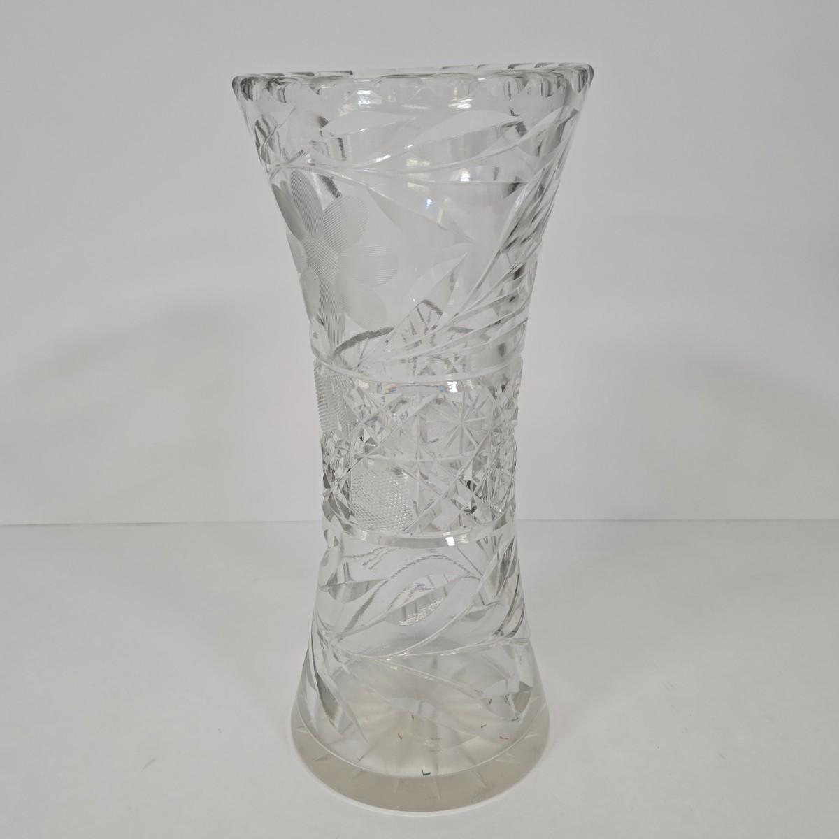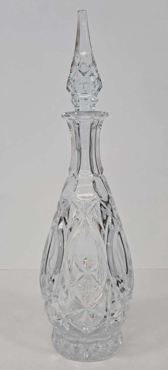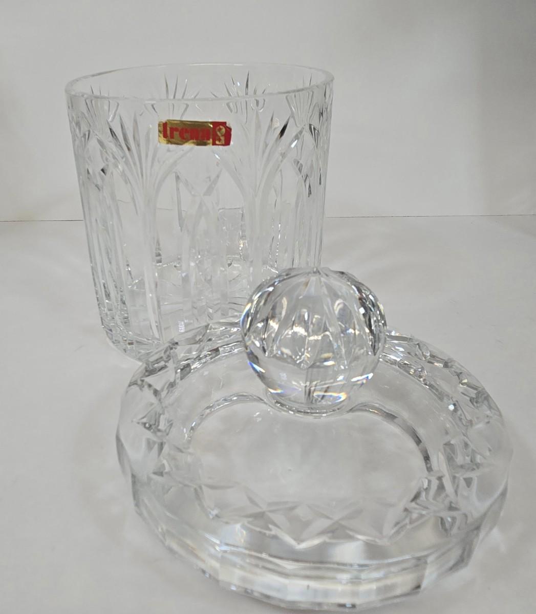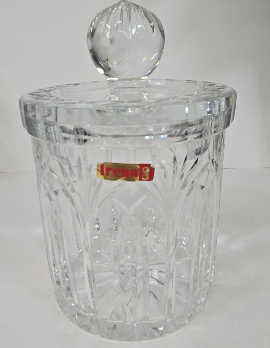 LOT 9: Vintage Handcut Irena Lead Crystal Biscuit Jar, Princess House Lead Crystal Wine Decanter, Salt Cellars, and 3 Crystal Vases