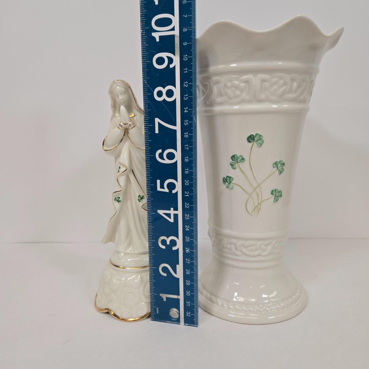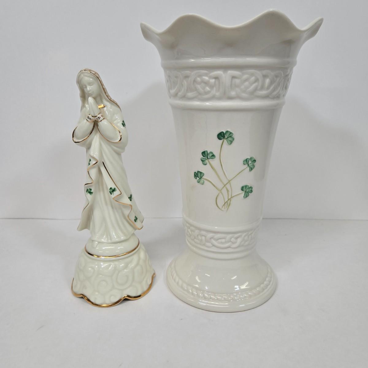 LOT 22: Irish Shamrock Virgin Mary Musical Figurine and Belleek Vase