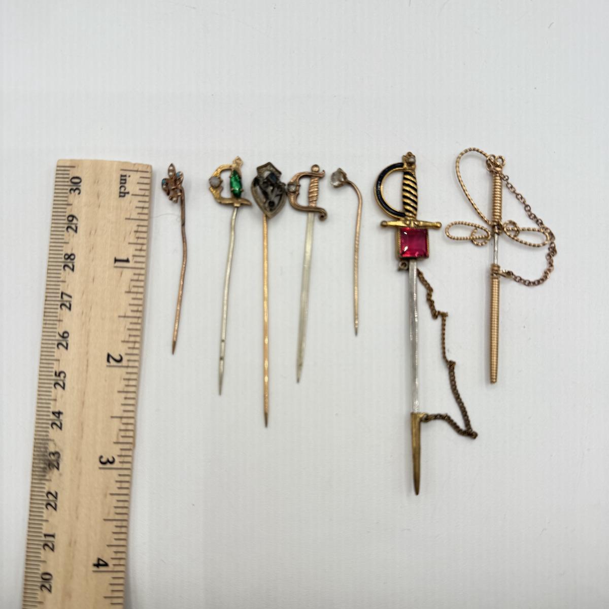 LOT 67: Vintage Stick / Tie Pins: Swords & More