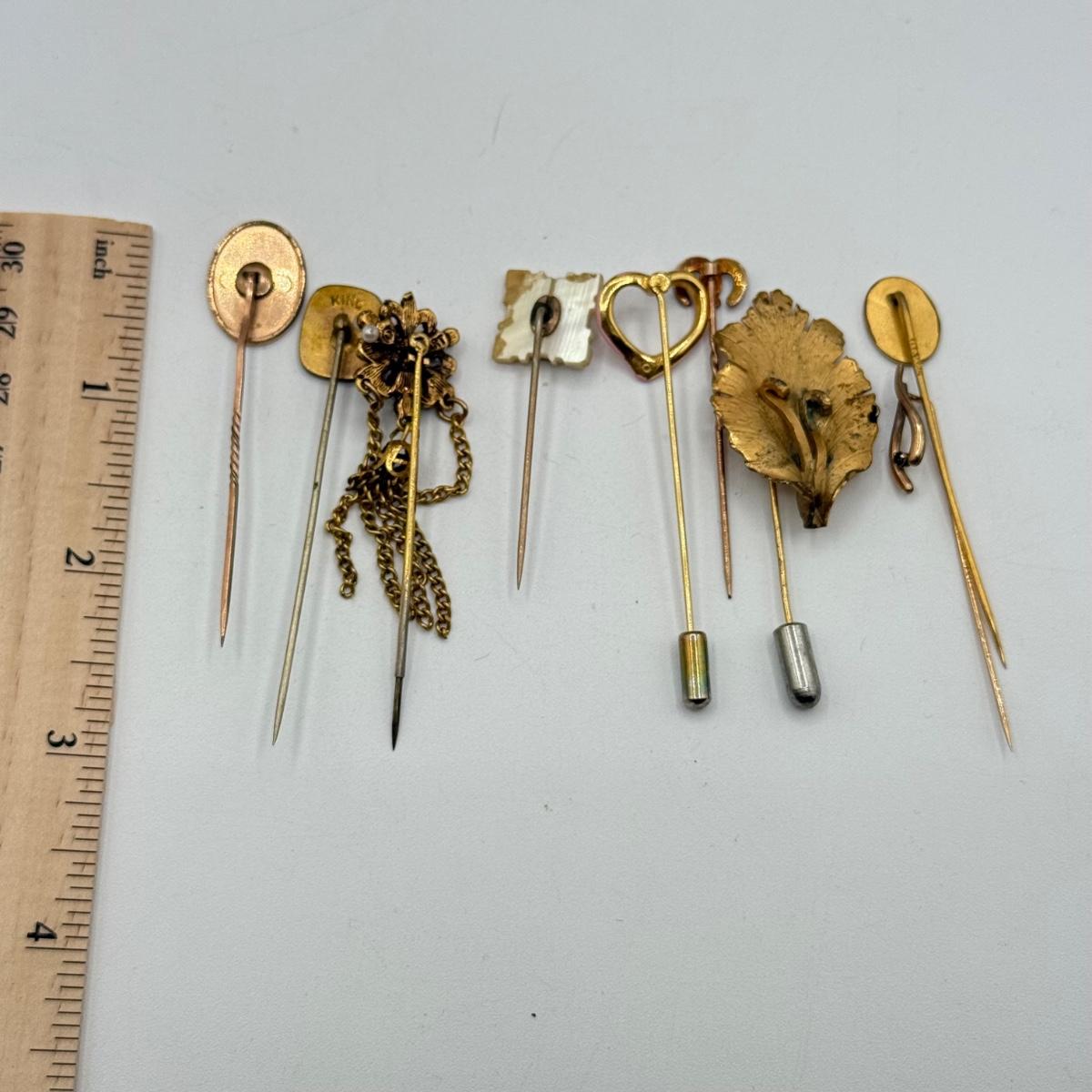 LOT 73: Vintage Stick Pins: Heart, Leaf, Chains & More