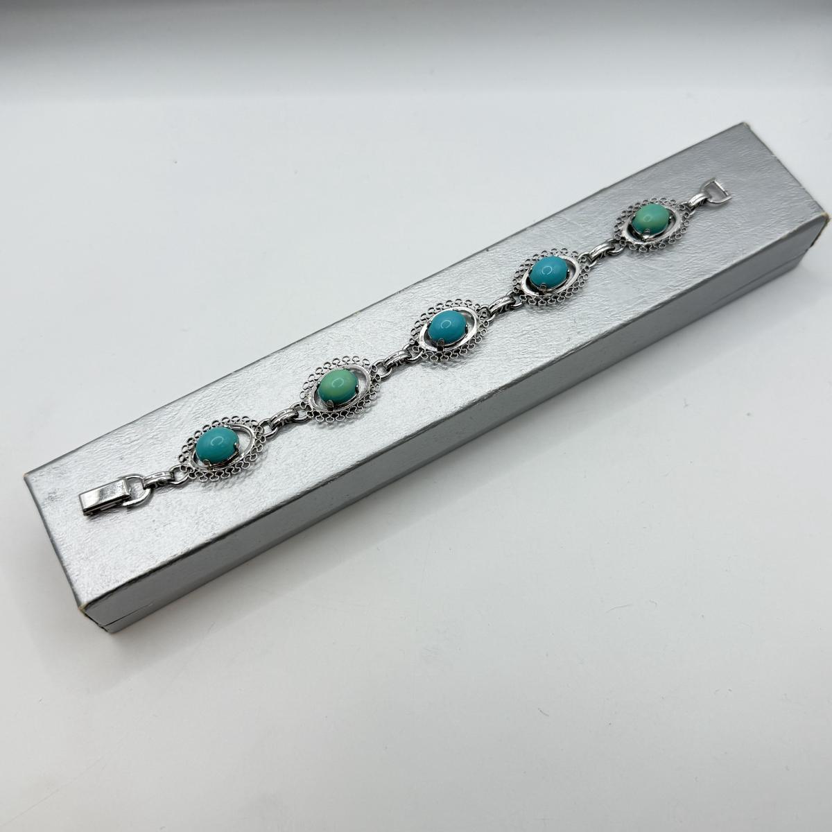 LOT 91: Sterling Silver Turquoise Bracelet 7” (12.05g)