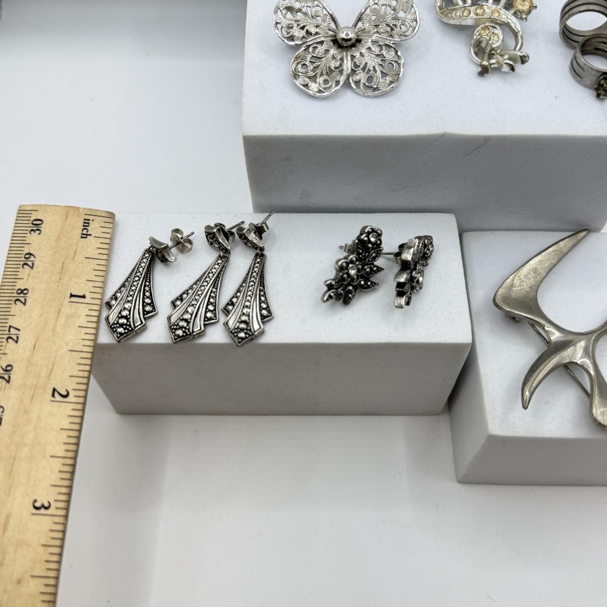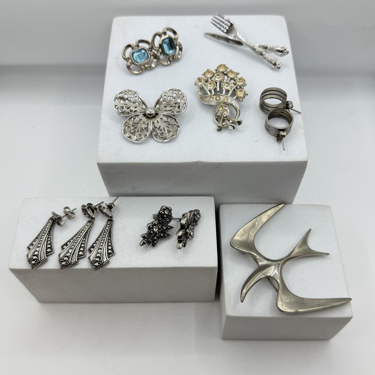 LOT 103: Collection of Silvertone Pins & Pierced Earrings