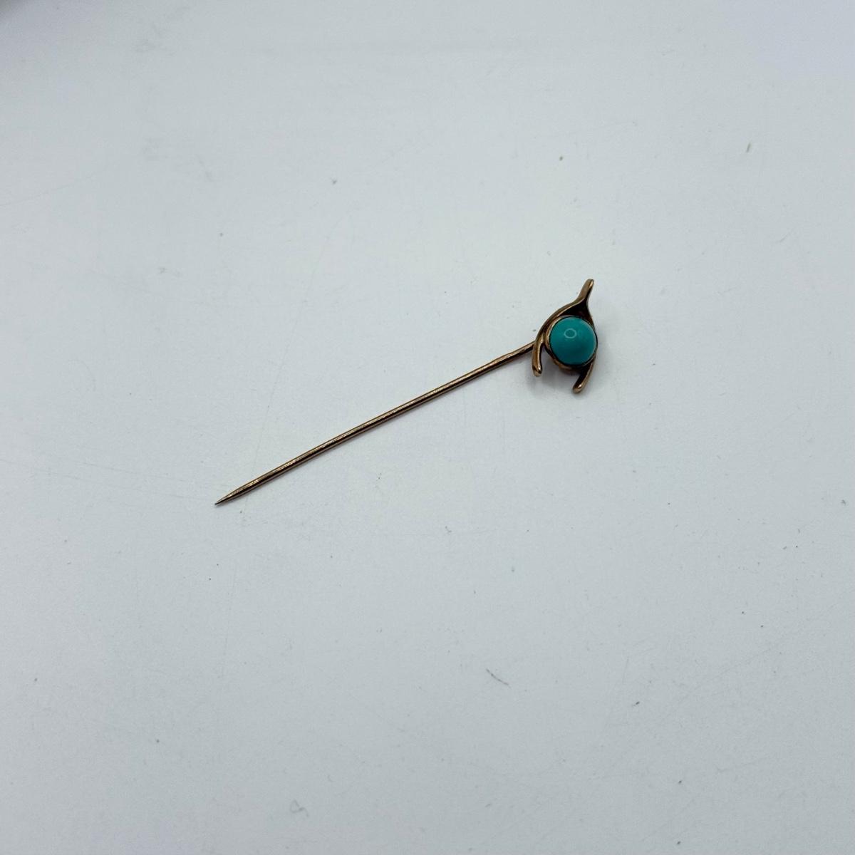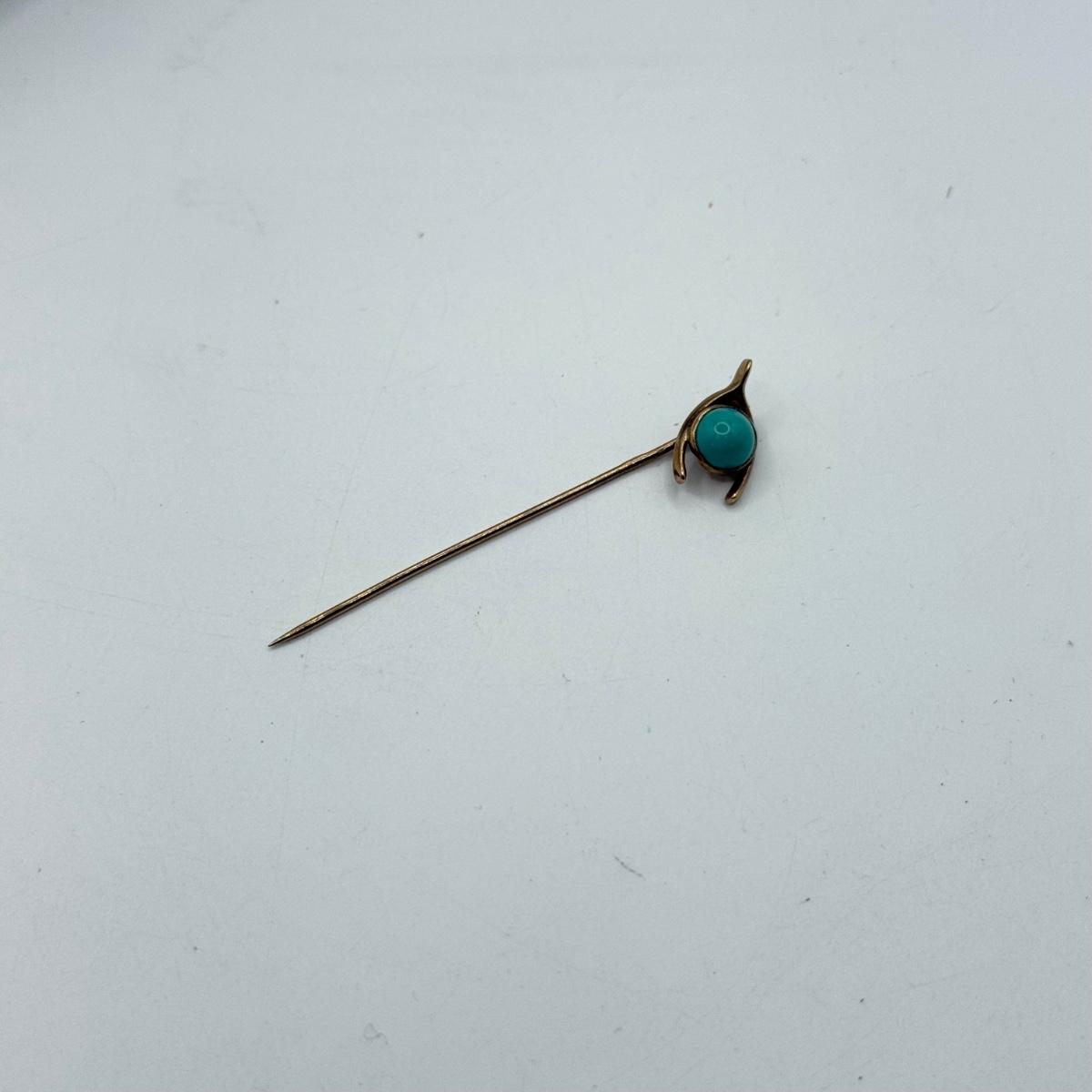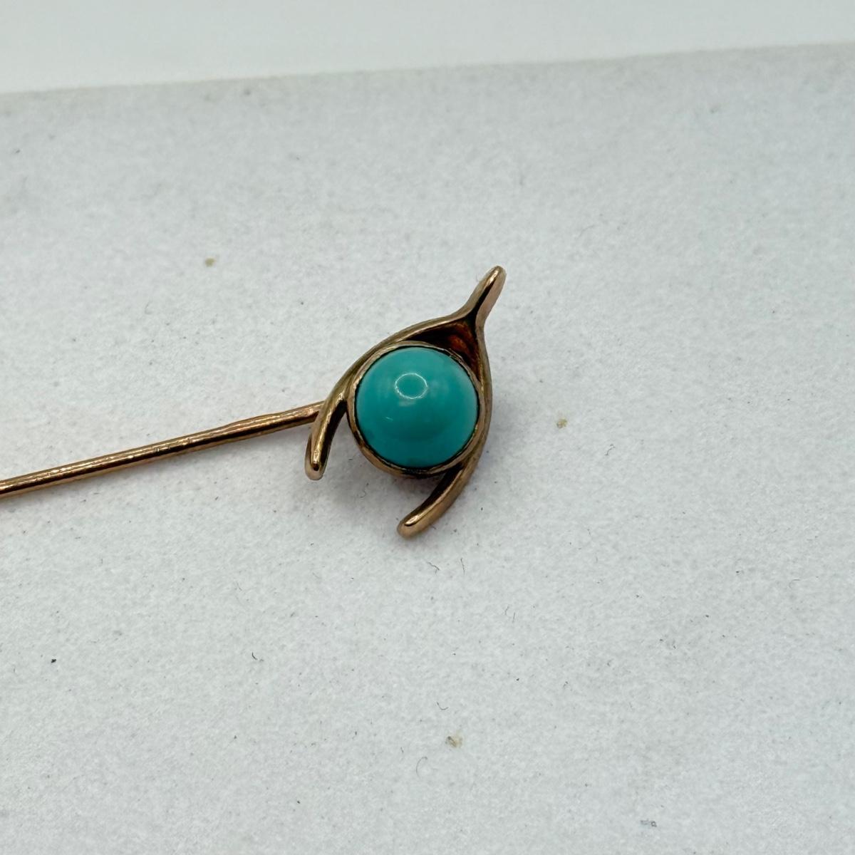 LOT 110: Vintage 10k Gold Turquoise Wishbone Hat / Stick Pin (1.0g)