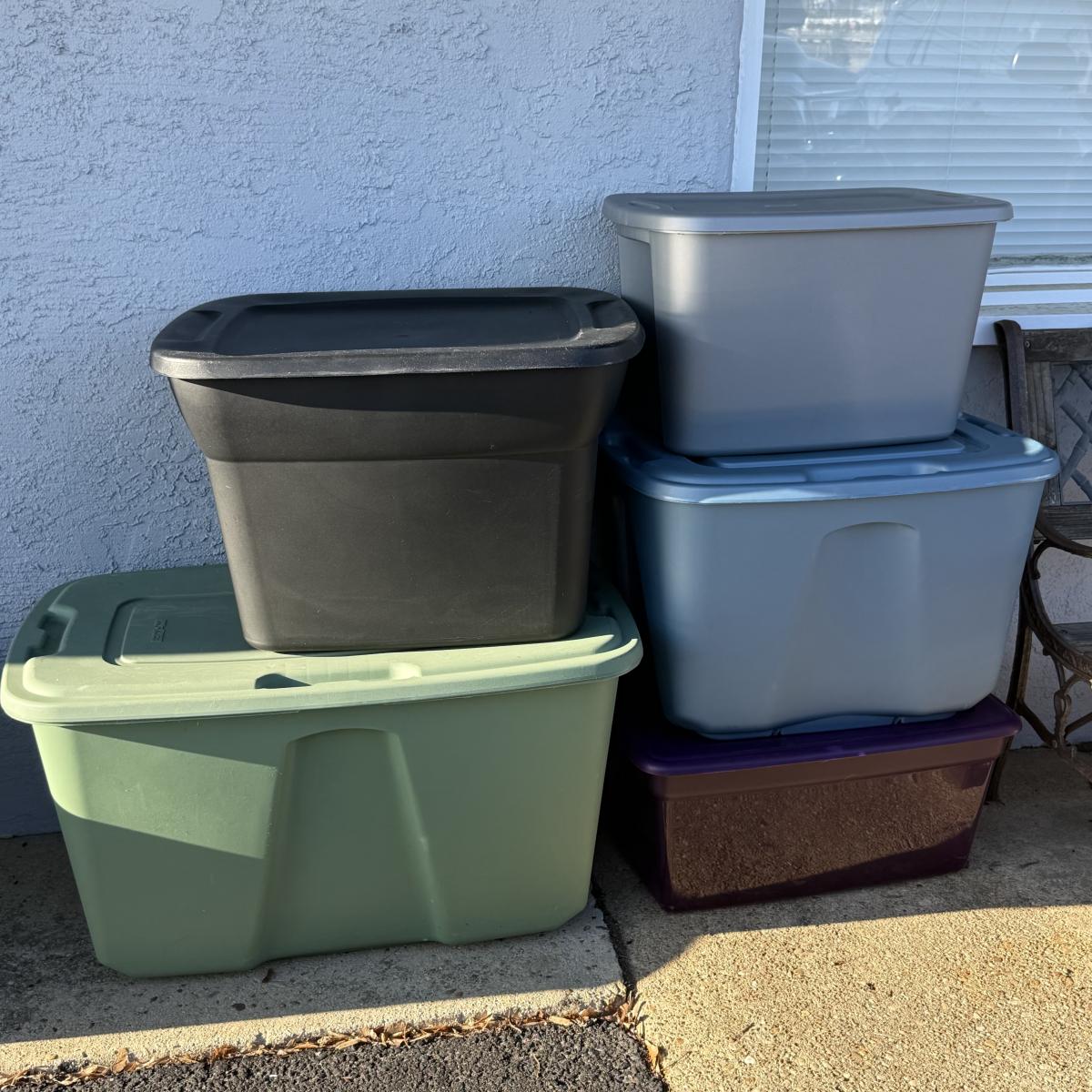 LOT 120: Five Different Sized Totes for Storage, Organization, or Estate Sale Pickups