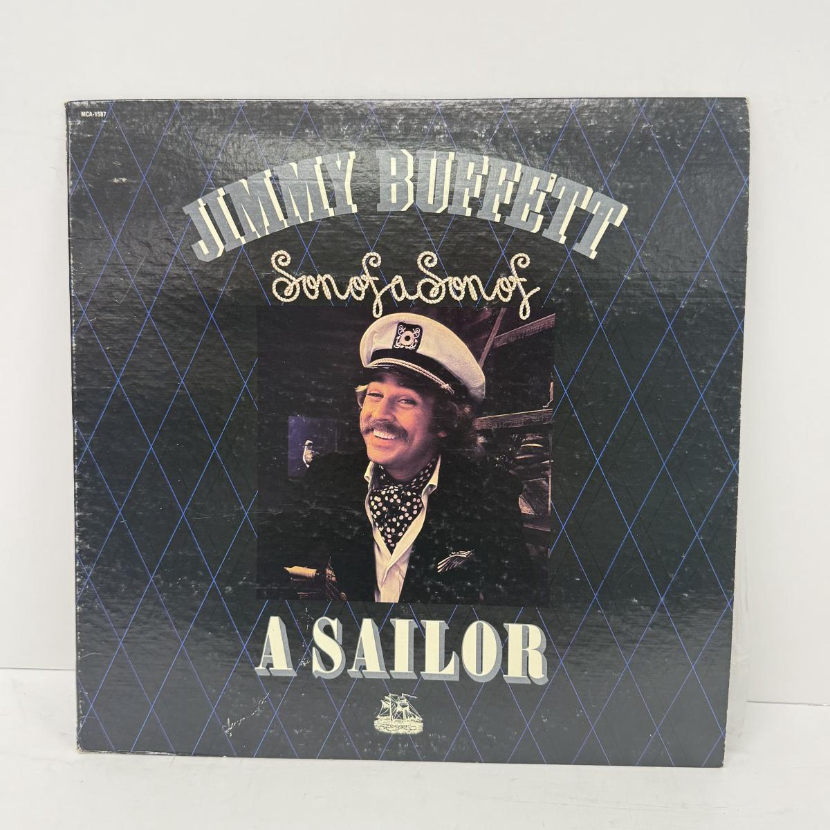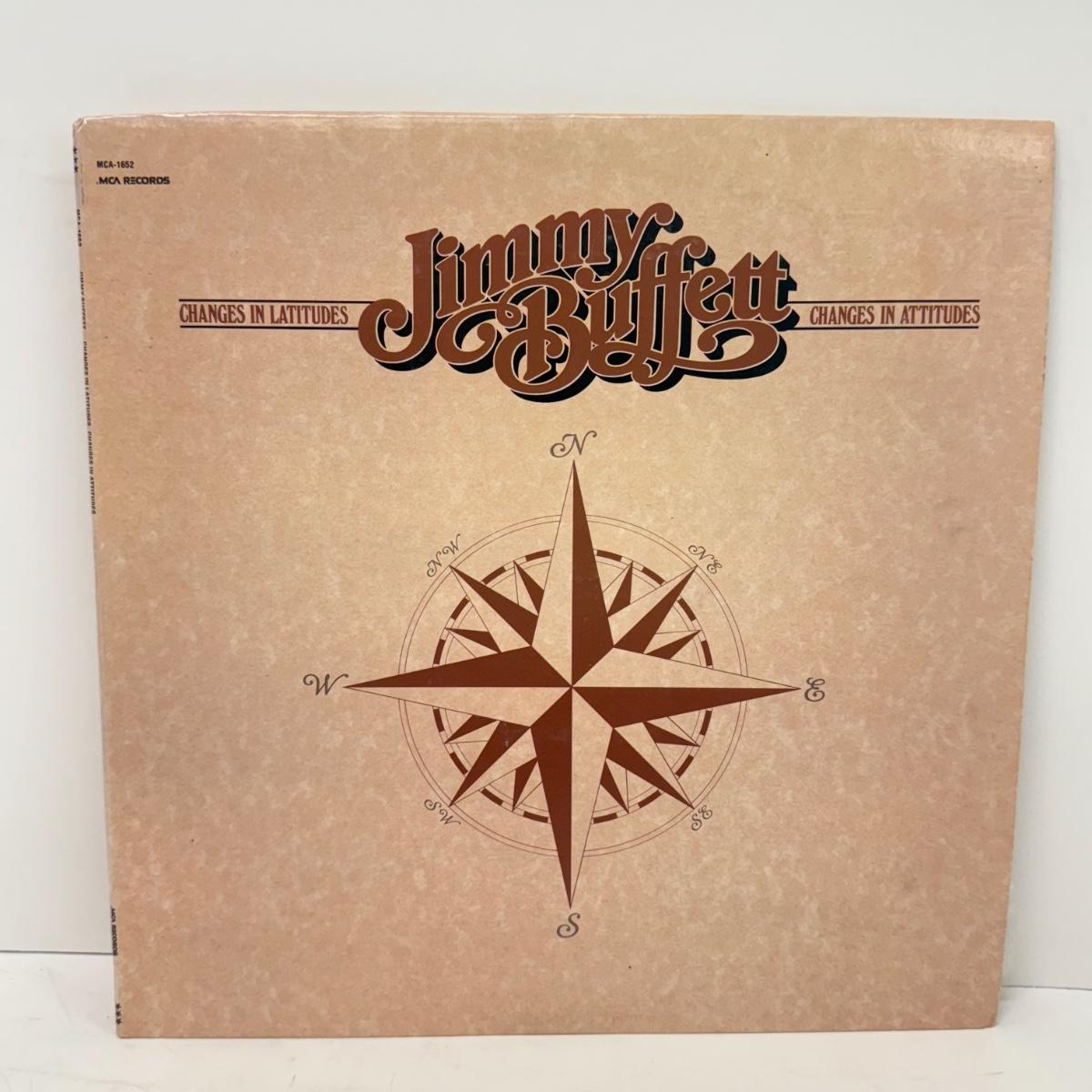 LOT 133: Jimmy Buffett Vinyl Record Albums: Floridays, Changes in Latitudes / Changes in Attitudes, Volcano, A1A, Coconut Telegraph, Last Mango Paris, Son of a Son of a Sailor