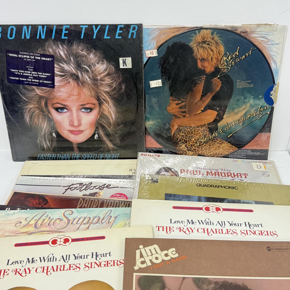 LOT 135: 1970s/80s Vinyl Record Albums: Footloose, Rod Stewart, Bonnie Tyler, Pointer Sisters, The Ray Charles Singers, Air Supply & More (LIST IN DESCRIPTION)