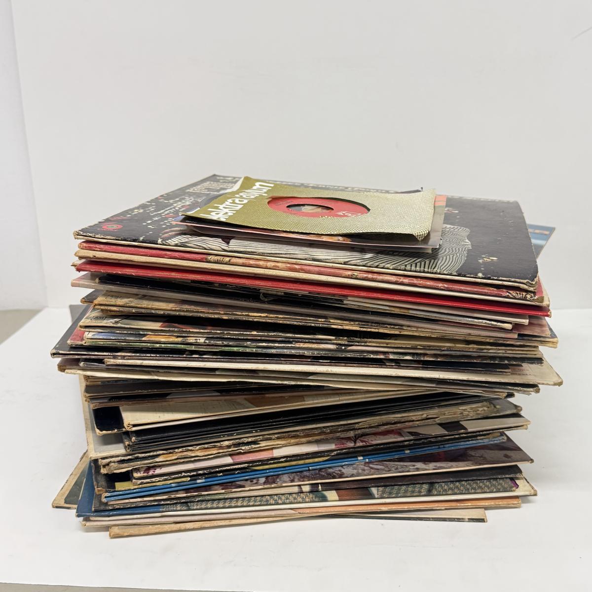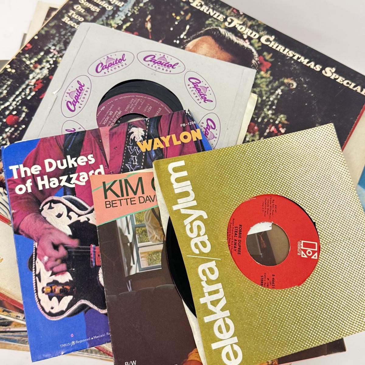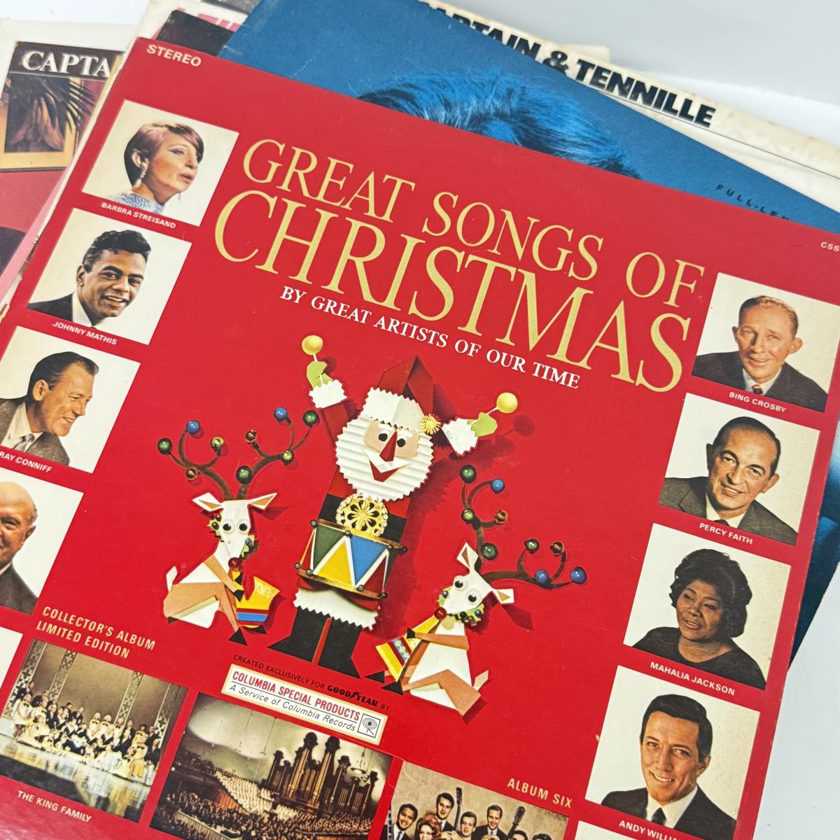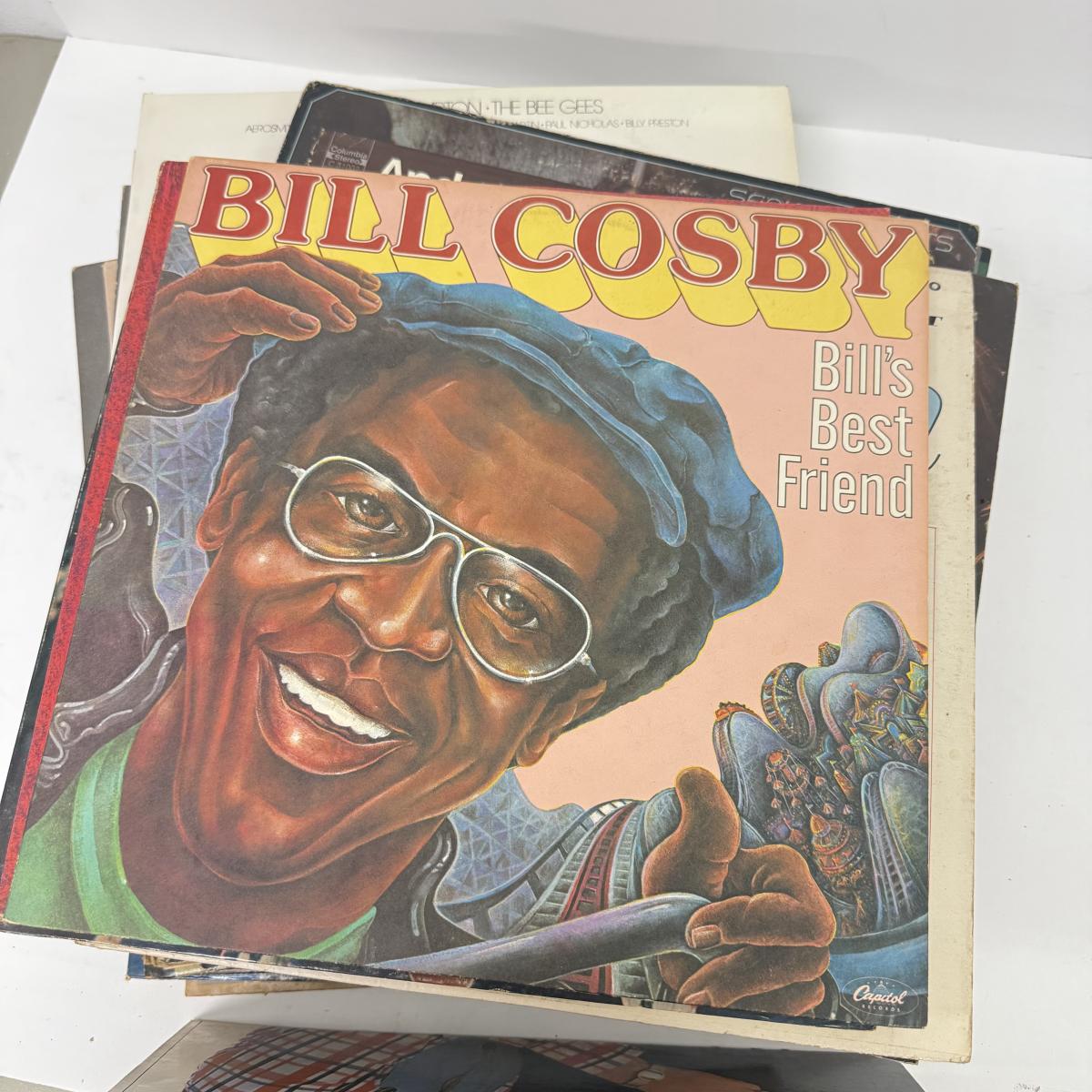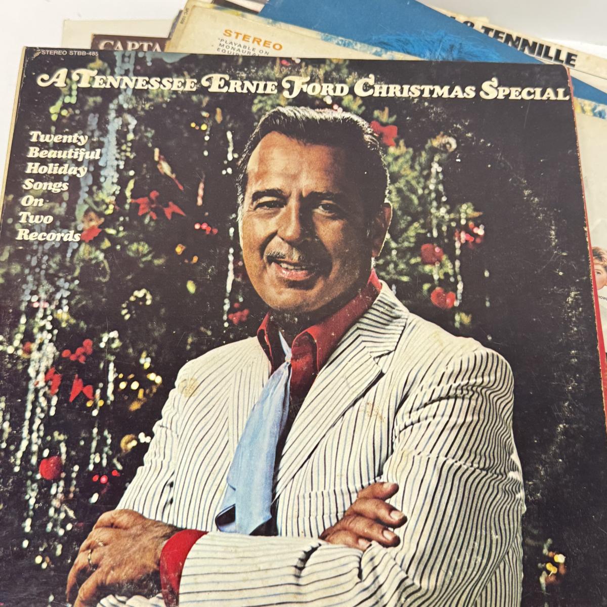 LOT 136: Stack of Various Vintage Vinyl Record Albums - Christmas Themed, Bill Cosby, 45s & More