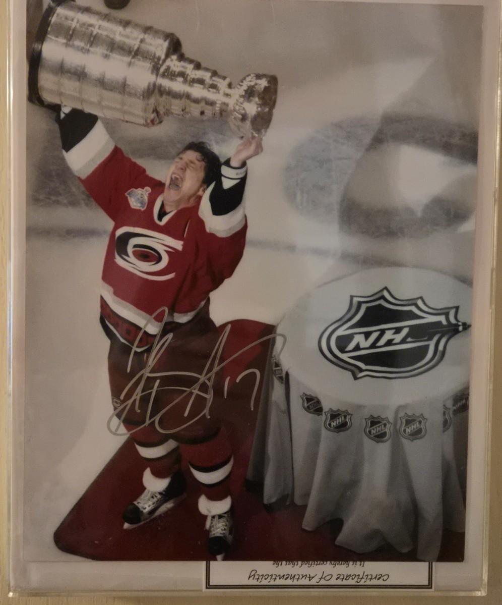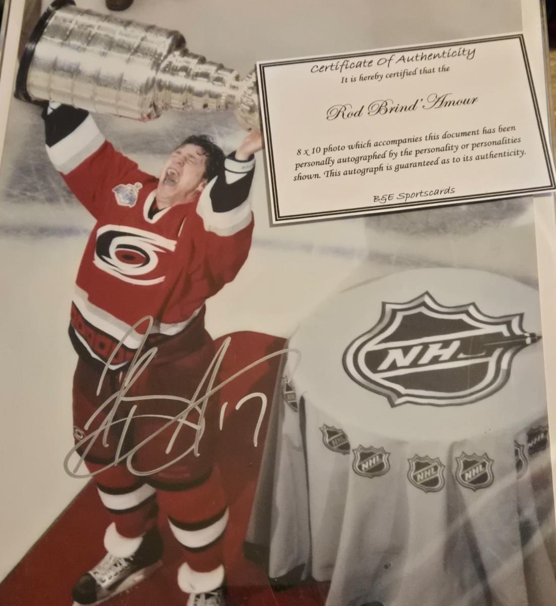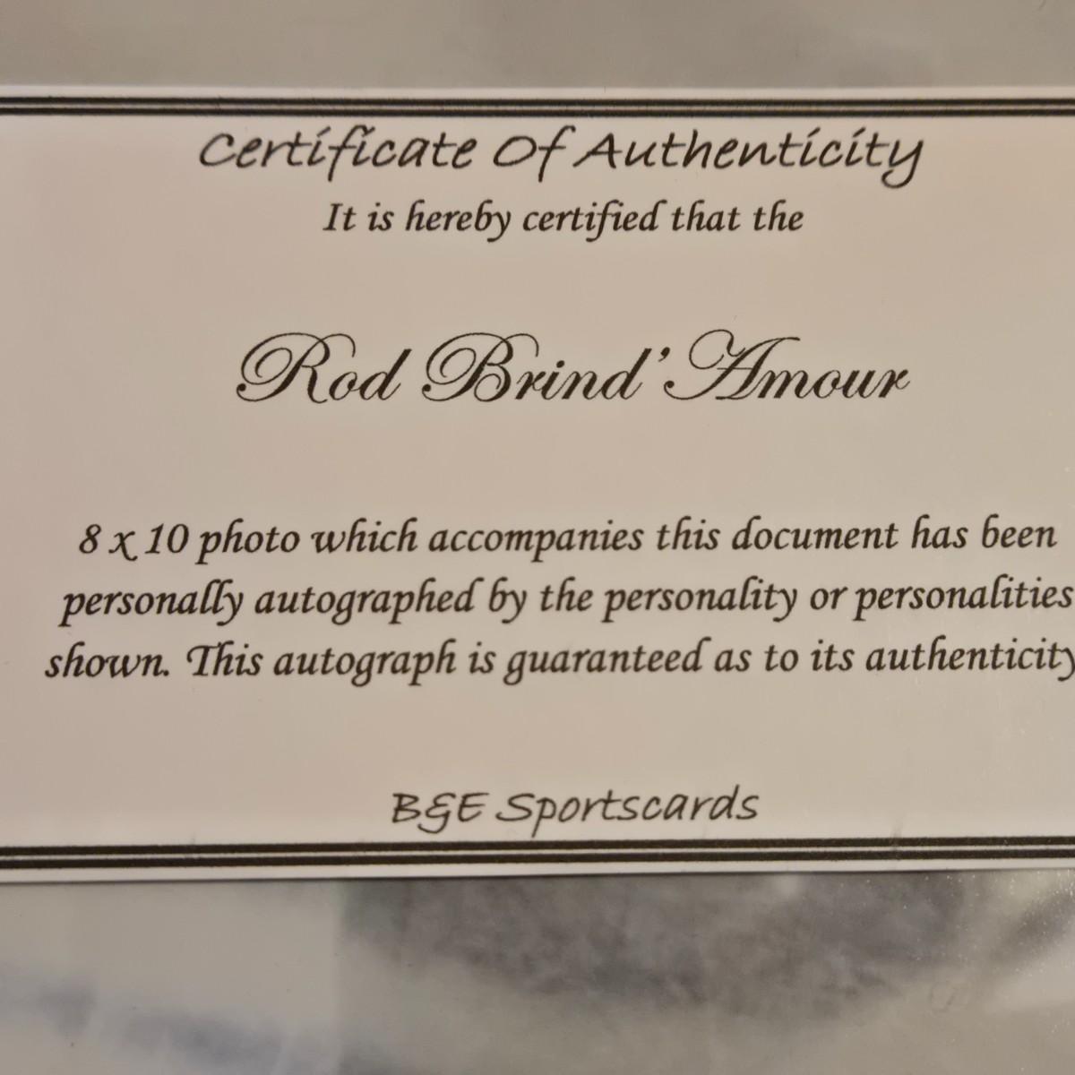 LOT 157: Hockey Cards Featuring Lindros, LeClair, Boucher, and More/ Rod Brind'Amour Autographed Photo with COA, Cards, Bobble Head, Signed Puck, Yearbook, and More