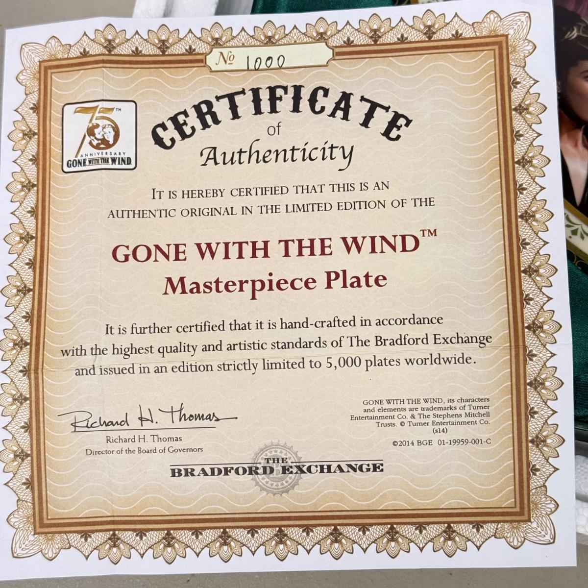 LOT 185: Great gift! New! Large 12" Bradford Exchange Limited Edition Gone with the Wind Masterpiece Collectors Plate #1000/5000