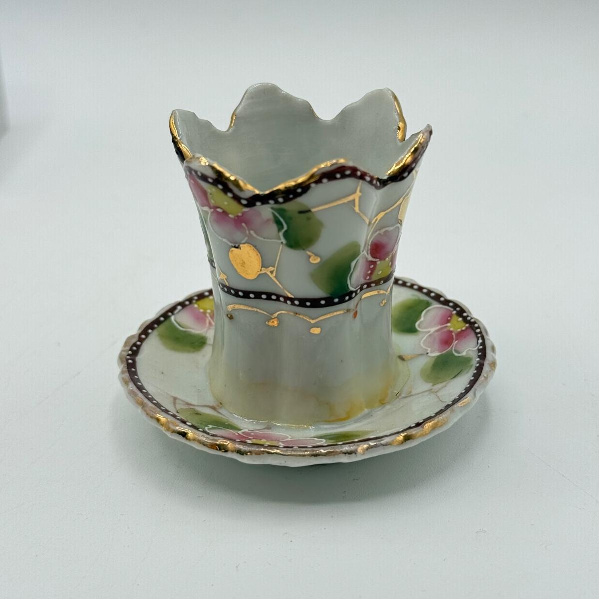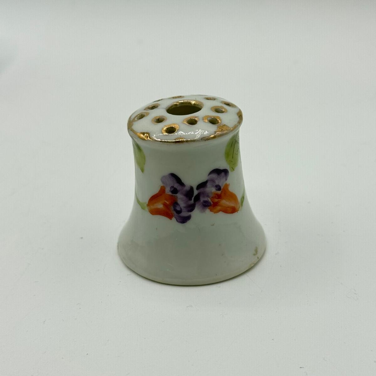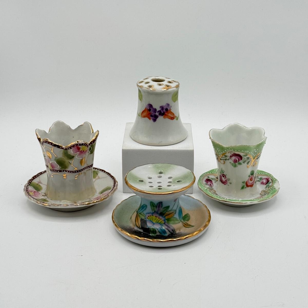 LOT 187: Vintage Hand Painted Porcelain Holders- two are for stick pins- 2 are for matches/toothpicks