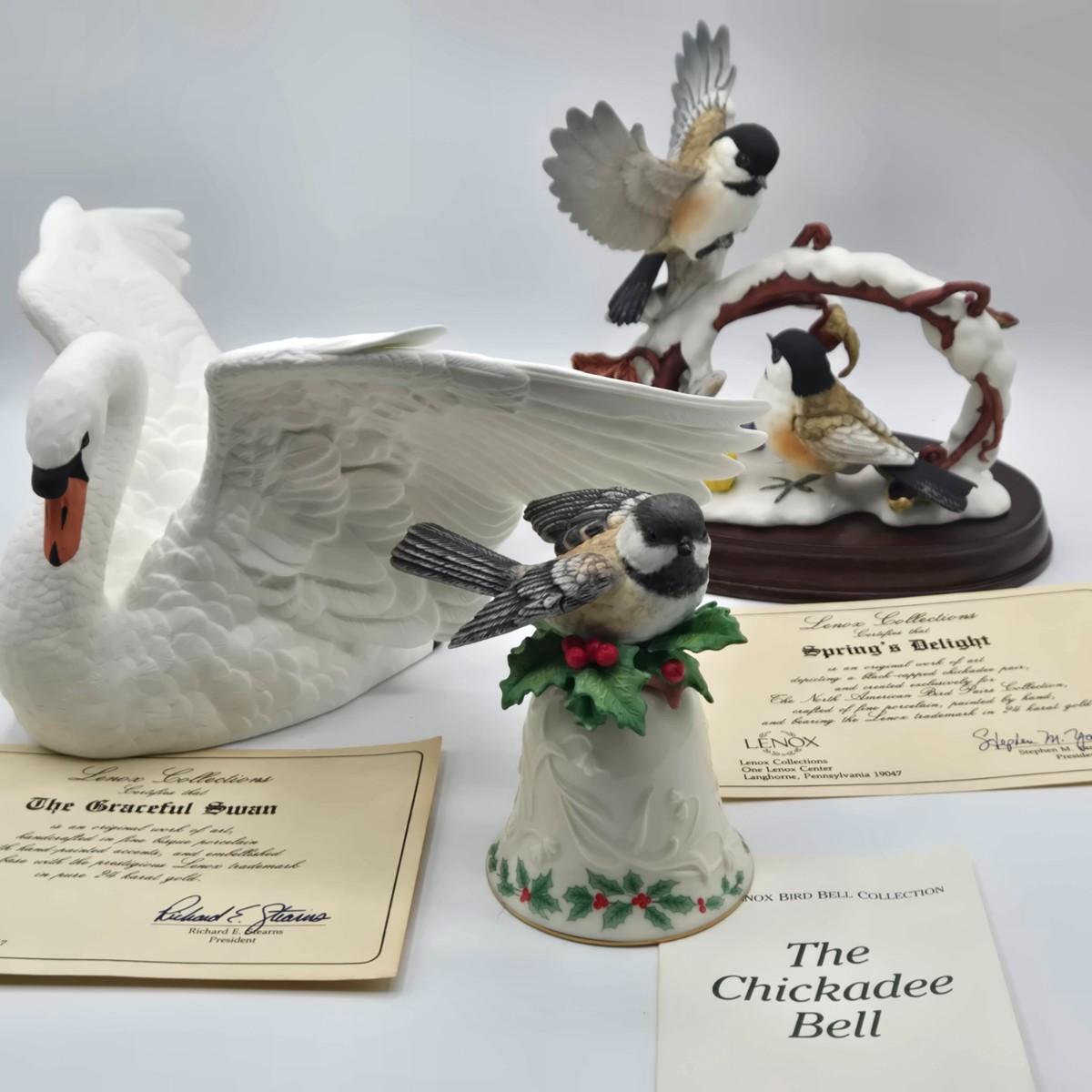 LOT 16: Lenox Majestic Swan, Spring's Delight, and Chickadee Holiday Bell