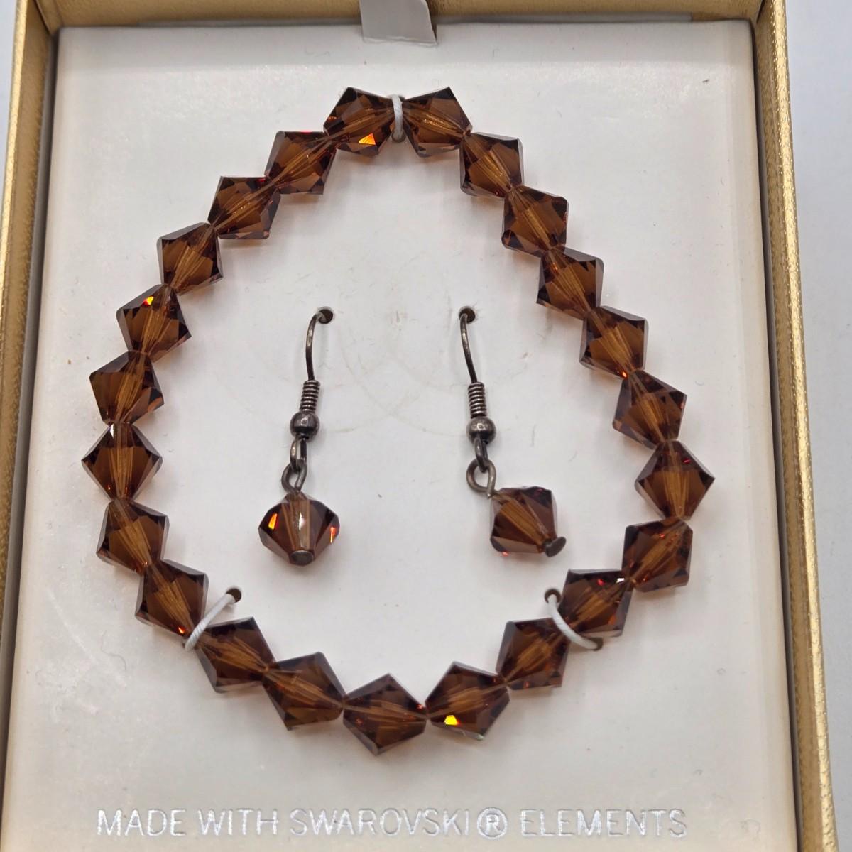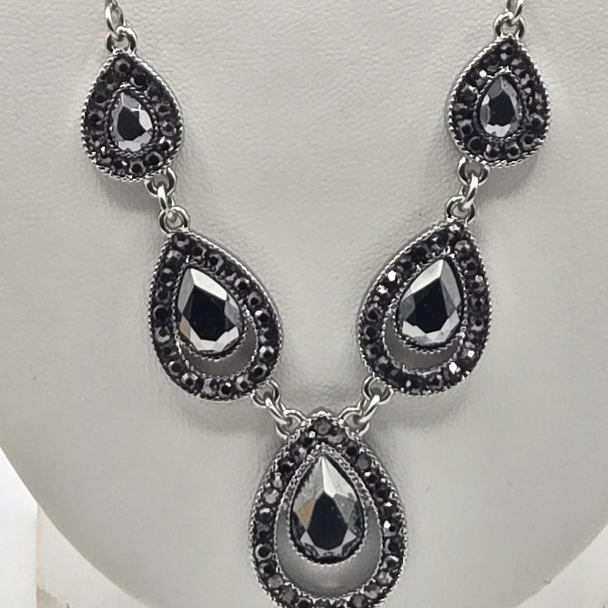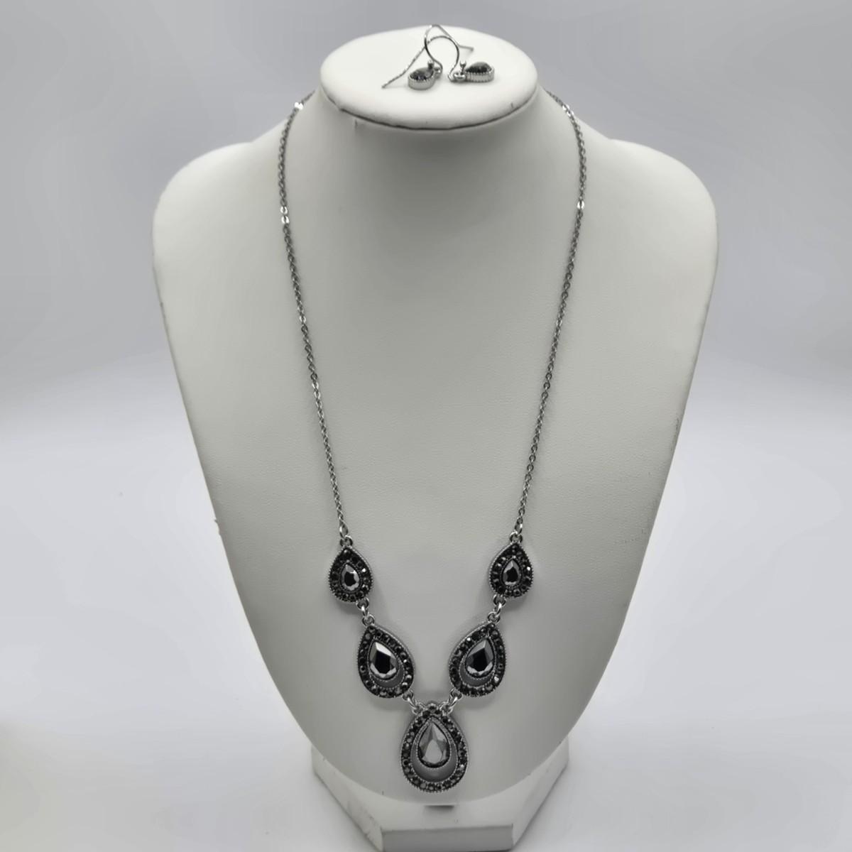 LOT 25J: Two Bracelet and Earrings Sets Made with Swarovski Elements, Liz Claiborne Black Teardrop Necklace with Matching Earrings, and More